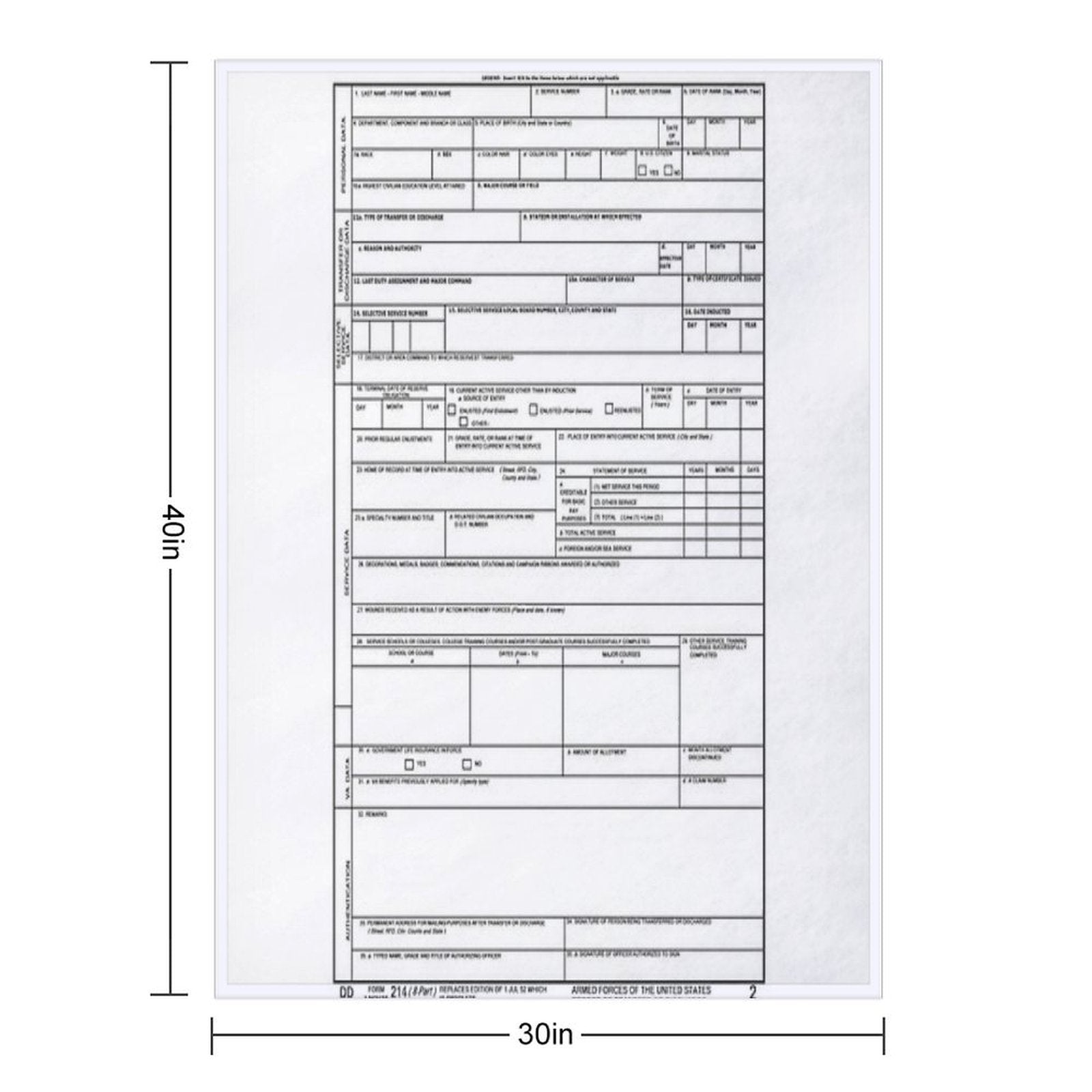 DD 214 Gift Blanket Size Chart: