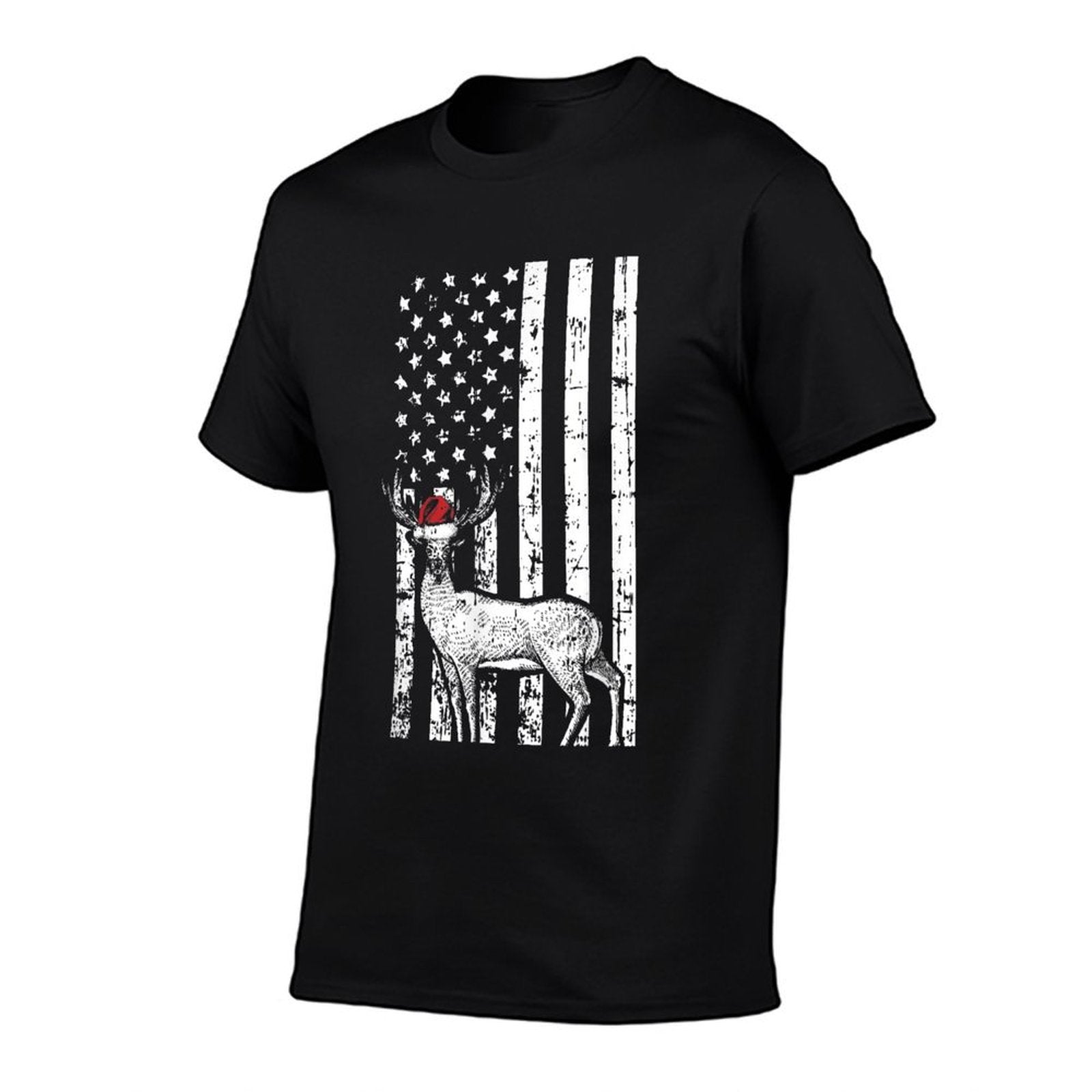 Deer Hunting Elk Santa Hat American Christmas Gifts for Women Kids Men Cotton T-Shirt