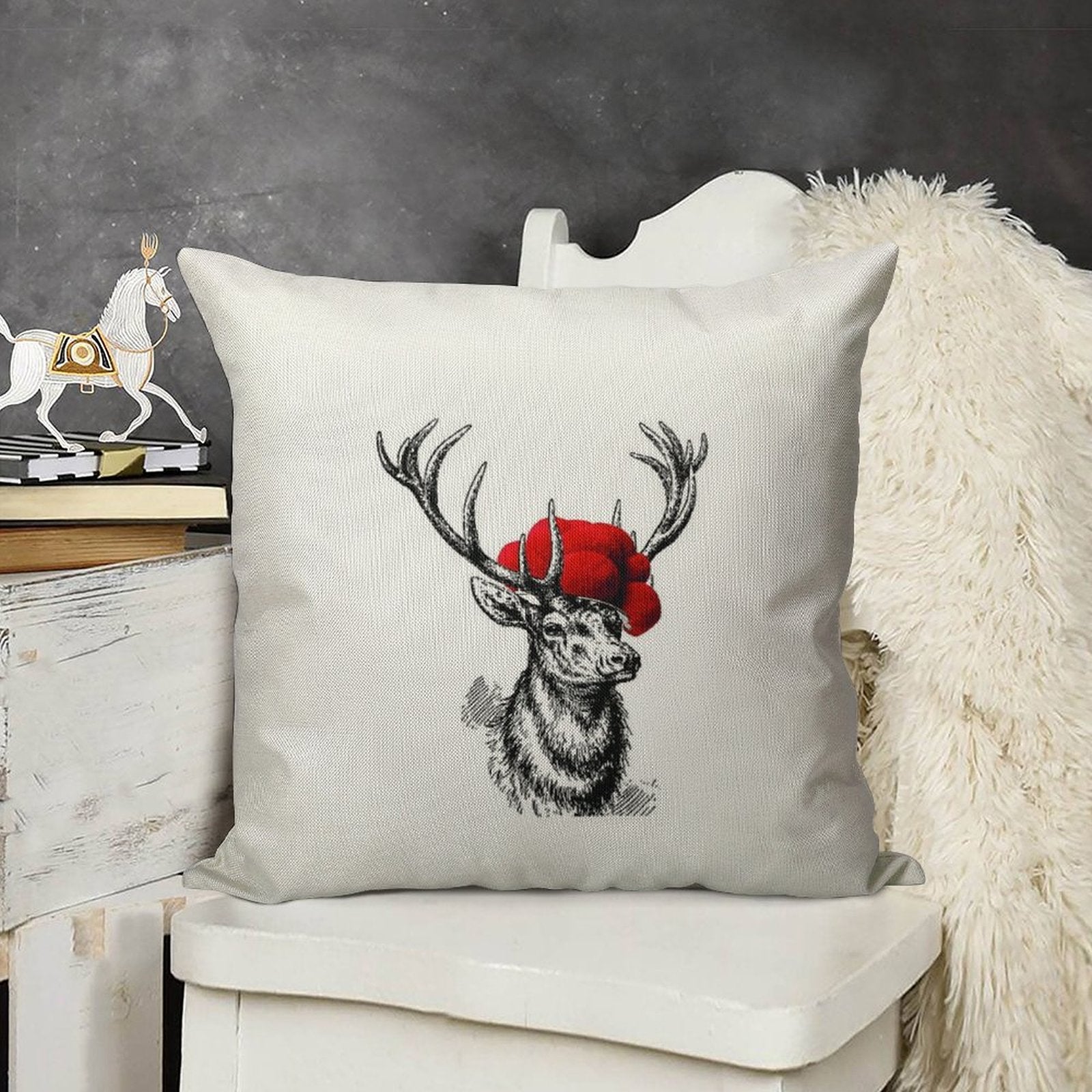 Deer with A Pollen Hat Linen Throw Pillow Cover