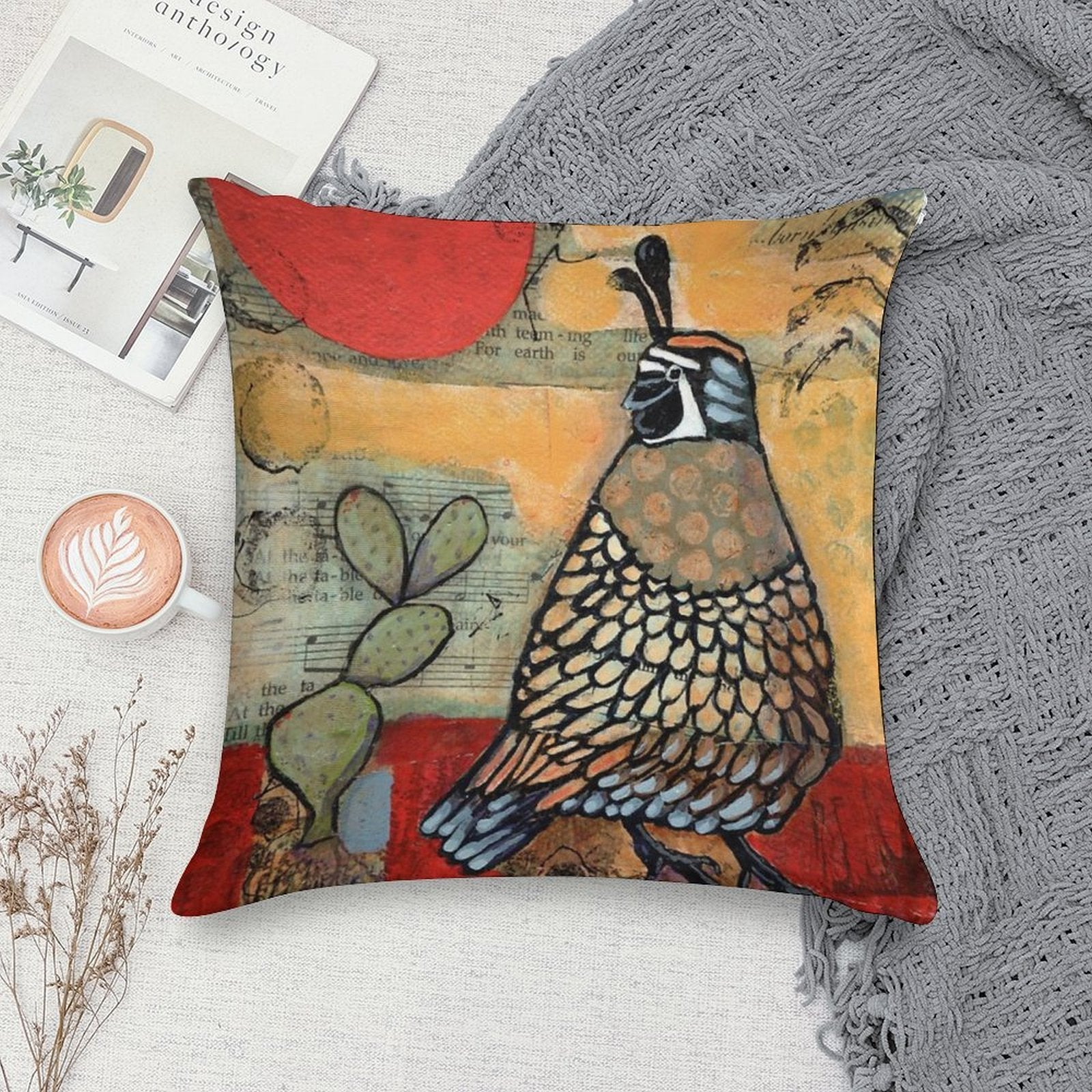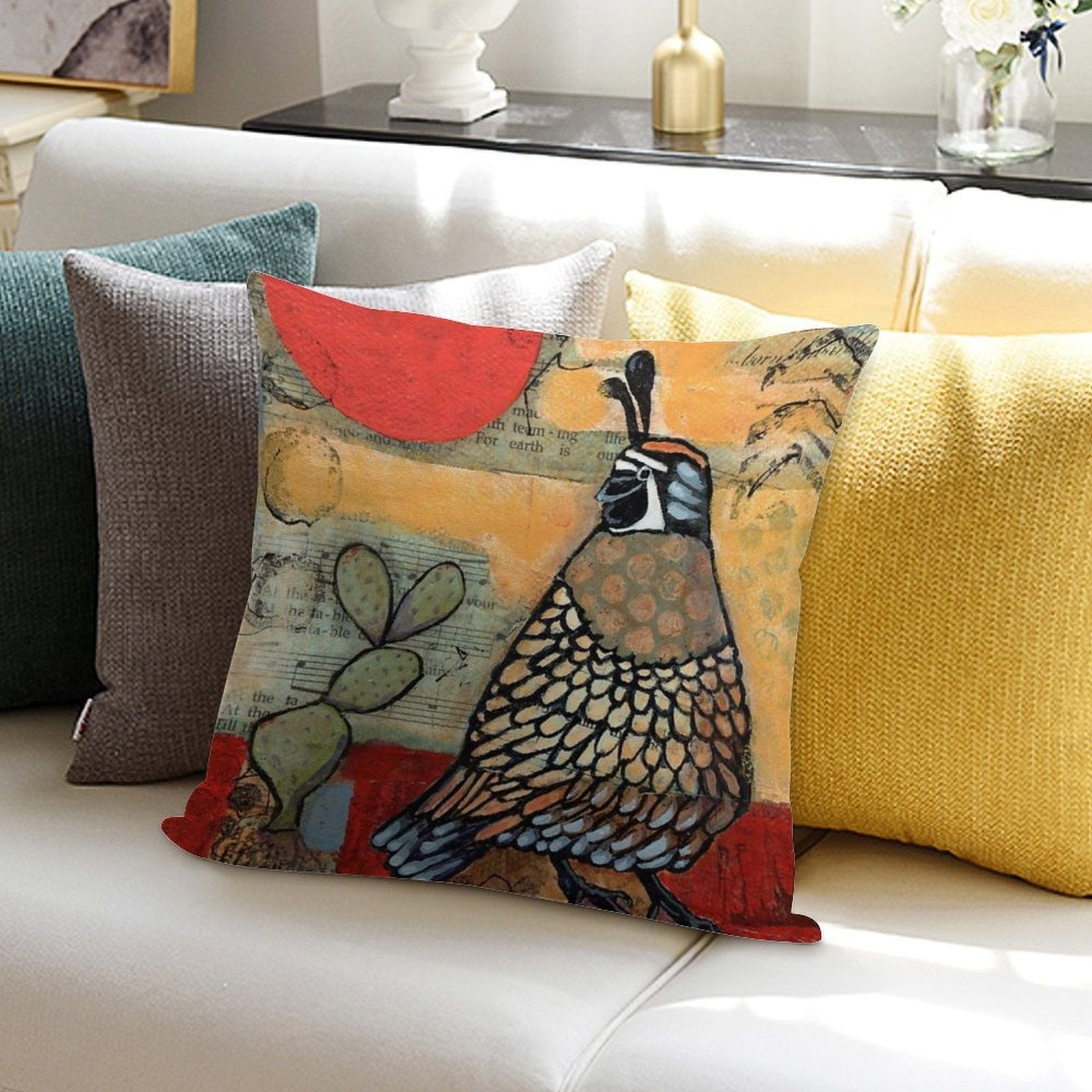 Desert Quail Red Sun Cactus Soft Warmth Comfort Throw Pillow