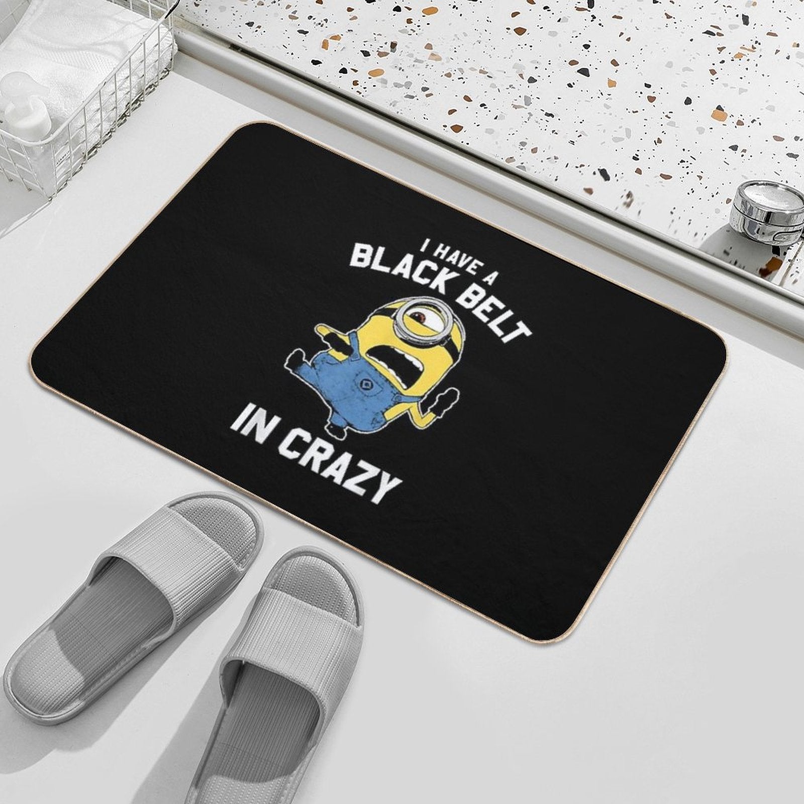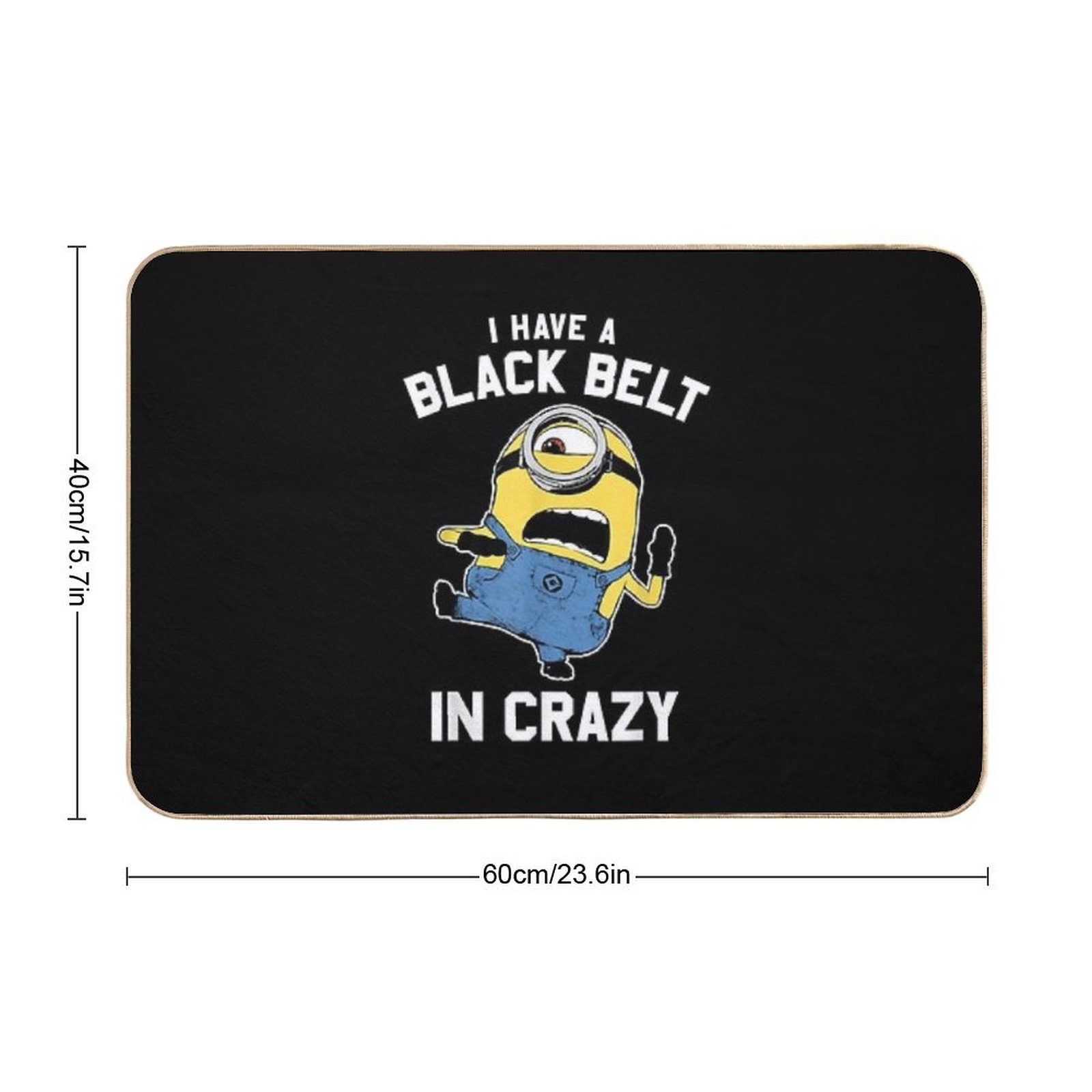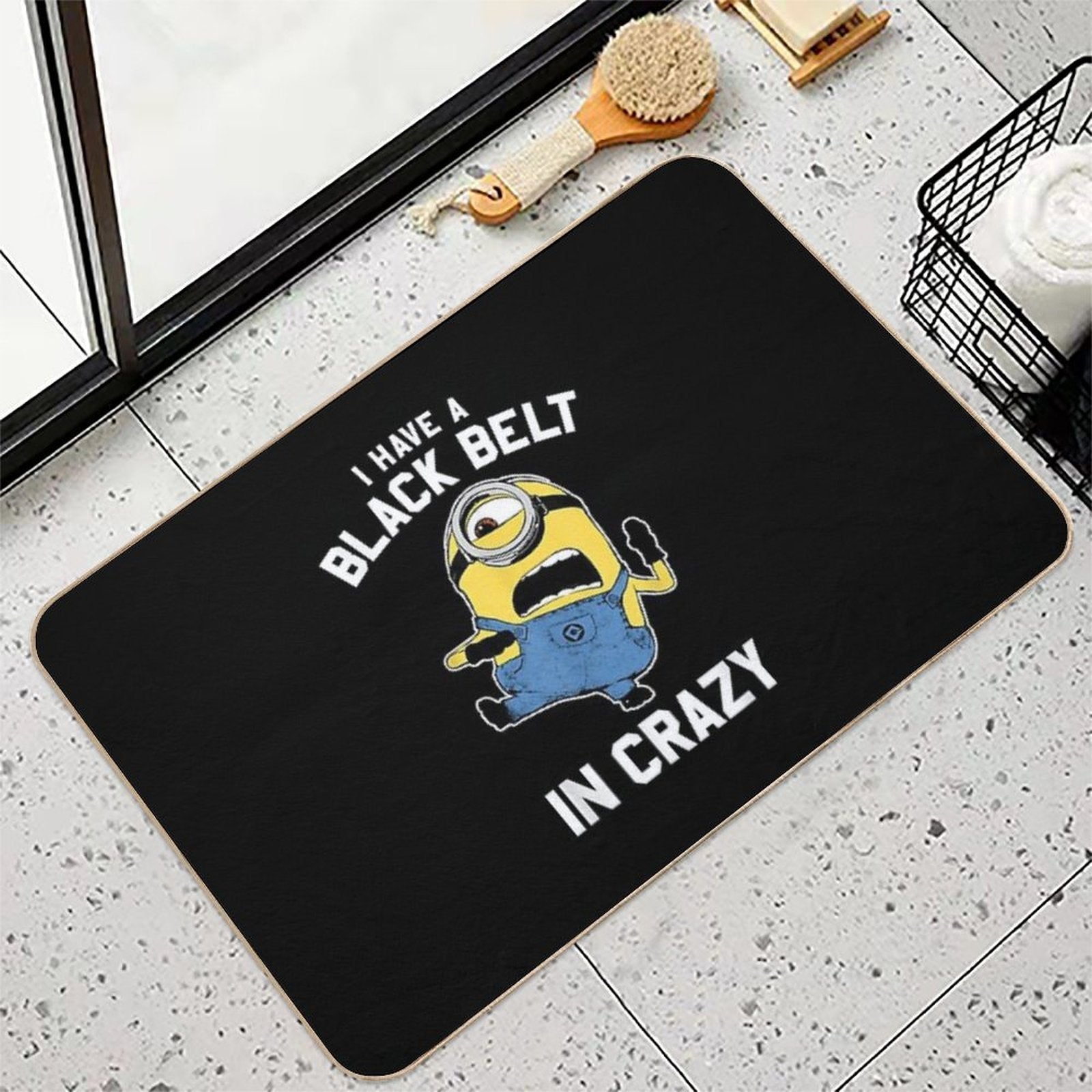- Use as a vanity rug, guest suite accent, or mudroom defender – the Despicable Me Minions Black Belt In Crazy Graphic Mat adapts to any space.