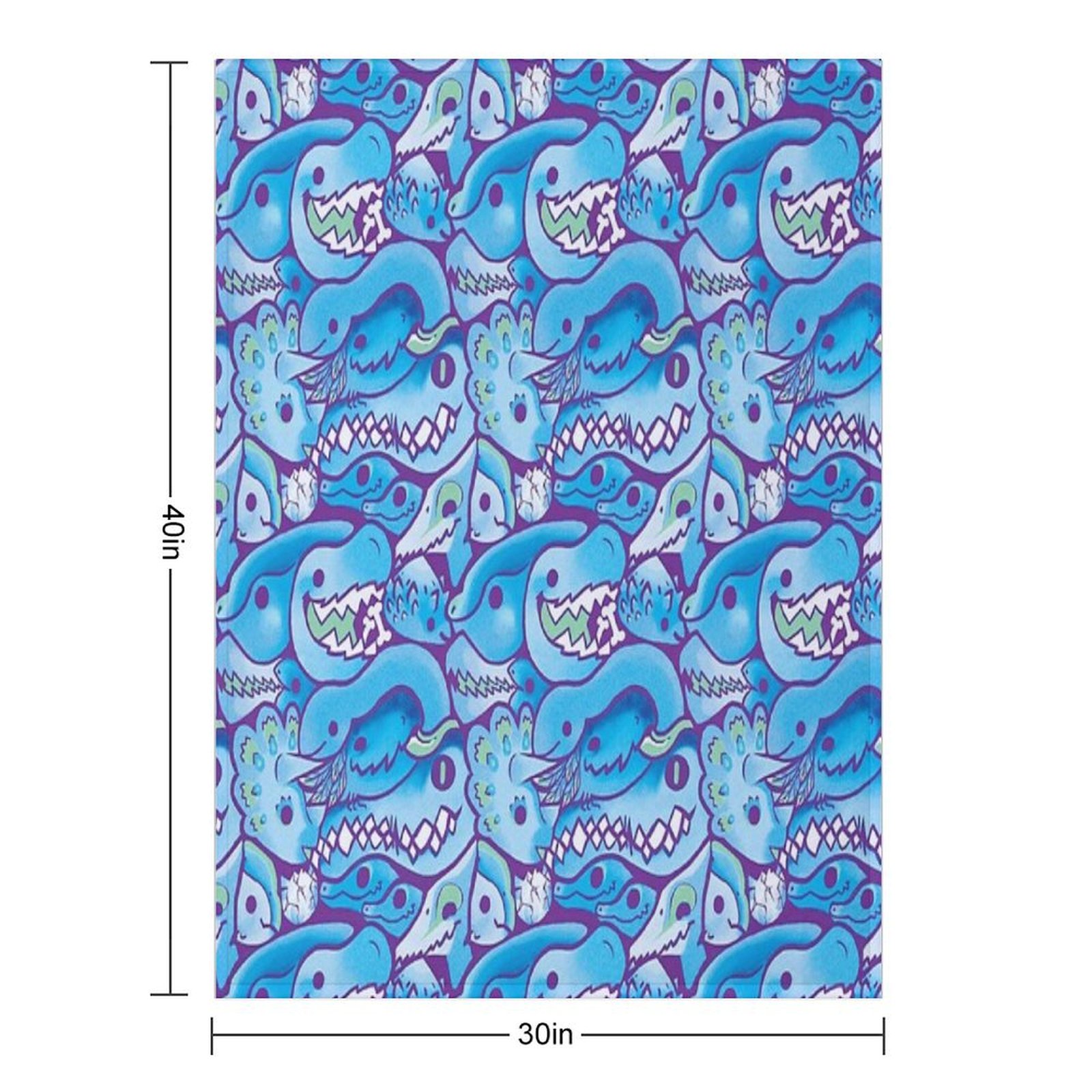 Dinosaur Pattern in Blue Blanket Size Chart: