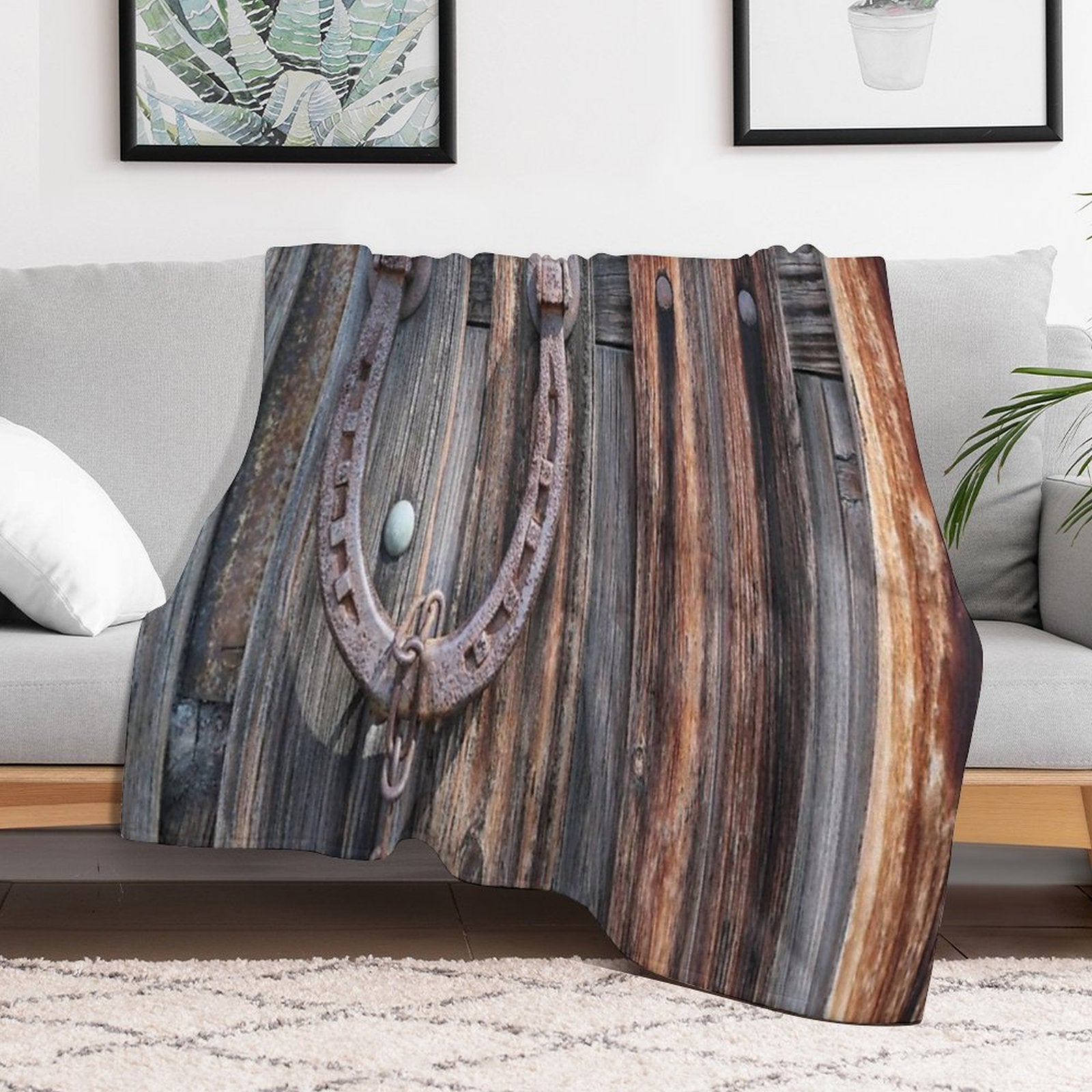 Distressed Barn Wood Rustic Equestrian Horseshoe Throw Blanket