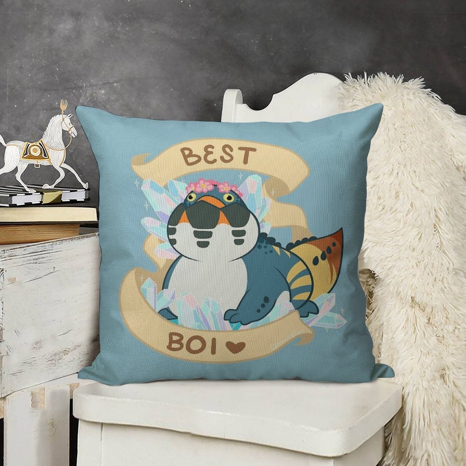 Dodogama Best Boi (MonHun World) Linen Throw Pillow Cover