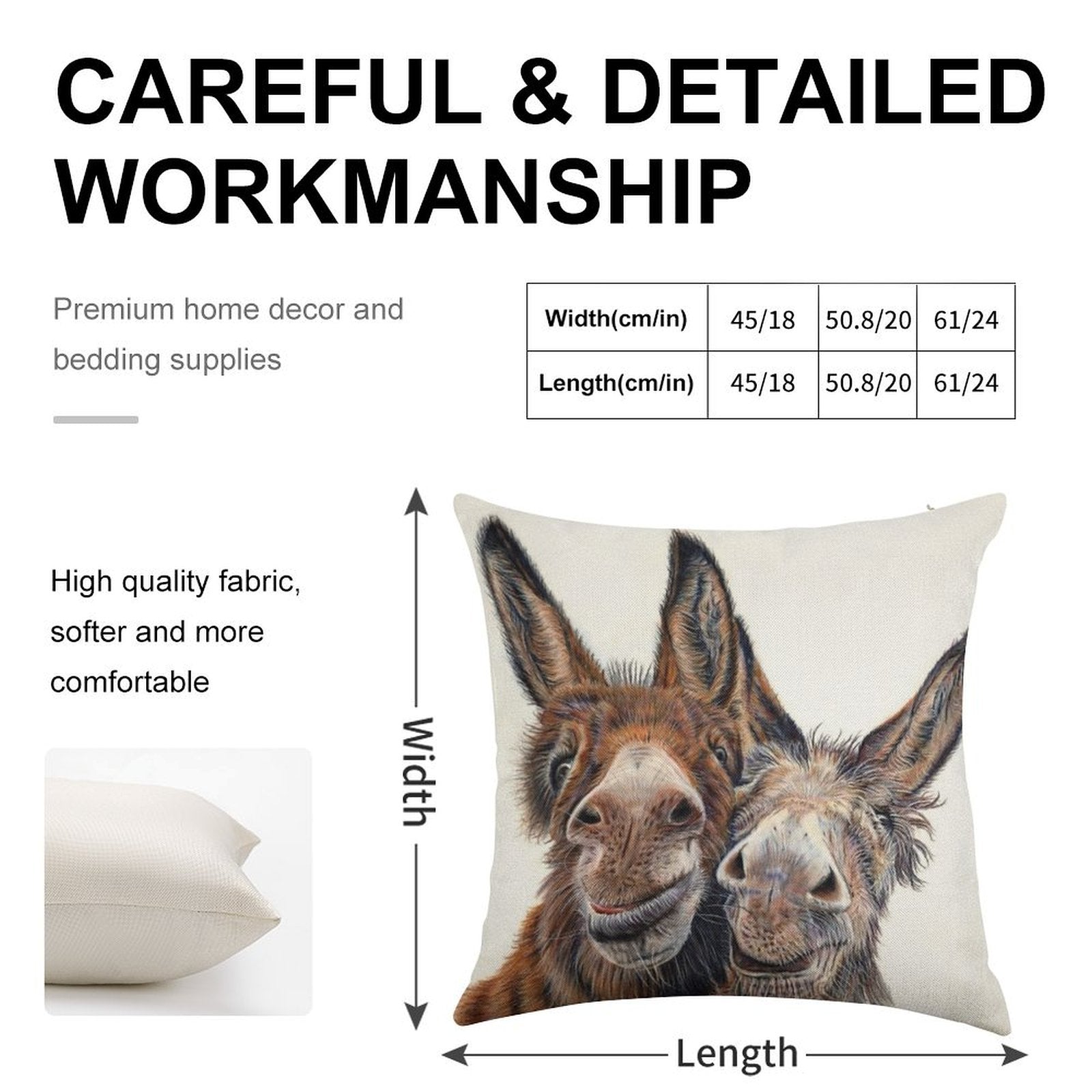 - Machine or hand washable (max 45°C). Avoid bleach and prolonged soaking to preserve the vibrant texture of your Donkeys - Hee Haw Luxury Pillow Cover.