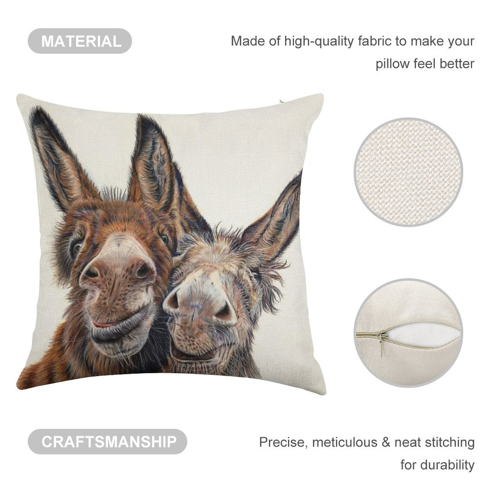 Upgrade your living space with our Donkeys - Hee Haw Linen Throw Pillow Cover, blending timeless elegance and modern functionality. Crafted from breathable, durable linen-cotton fabric, this Donkeys - Hee Haw Customizable Home Decor Gift features reinforced edges and a hidden zipper for a flawless finish. Perfect for bedrooms, RVs, or vacation homes, our Donkeys - Hee Haw Luxury Pillow Cover offers versatility and style, making it ideal for everyday use or heartfelt gifting.