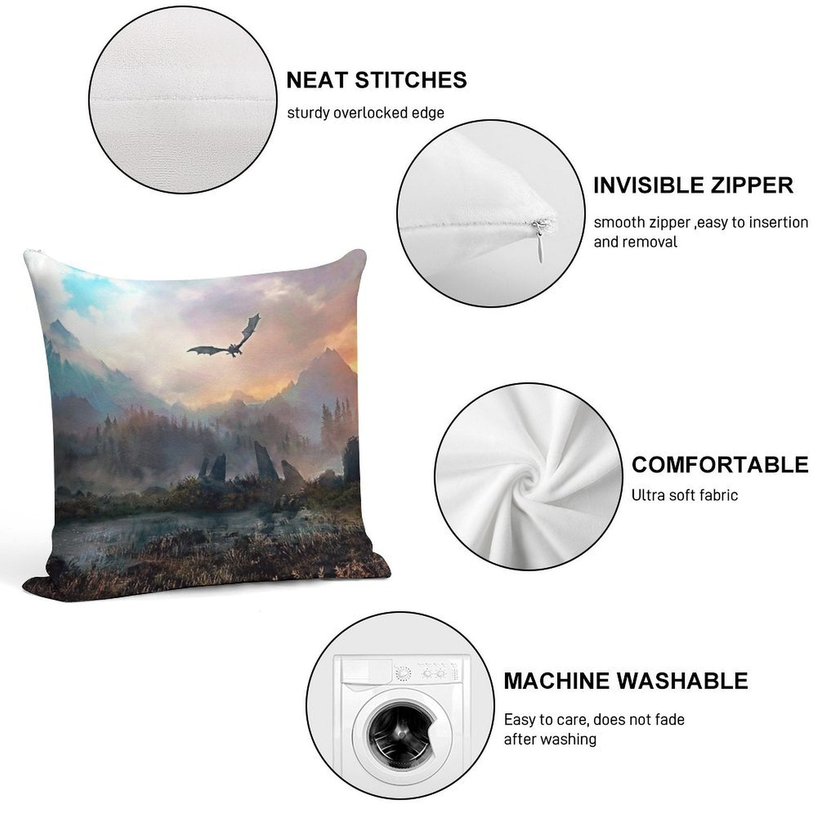 Dragon Mountain Soft Hidden Zipper Throw Pillow