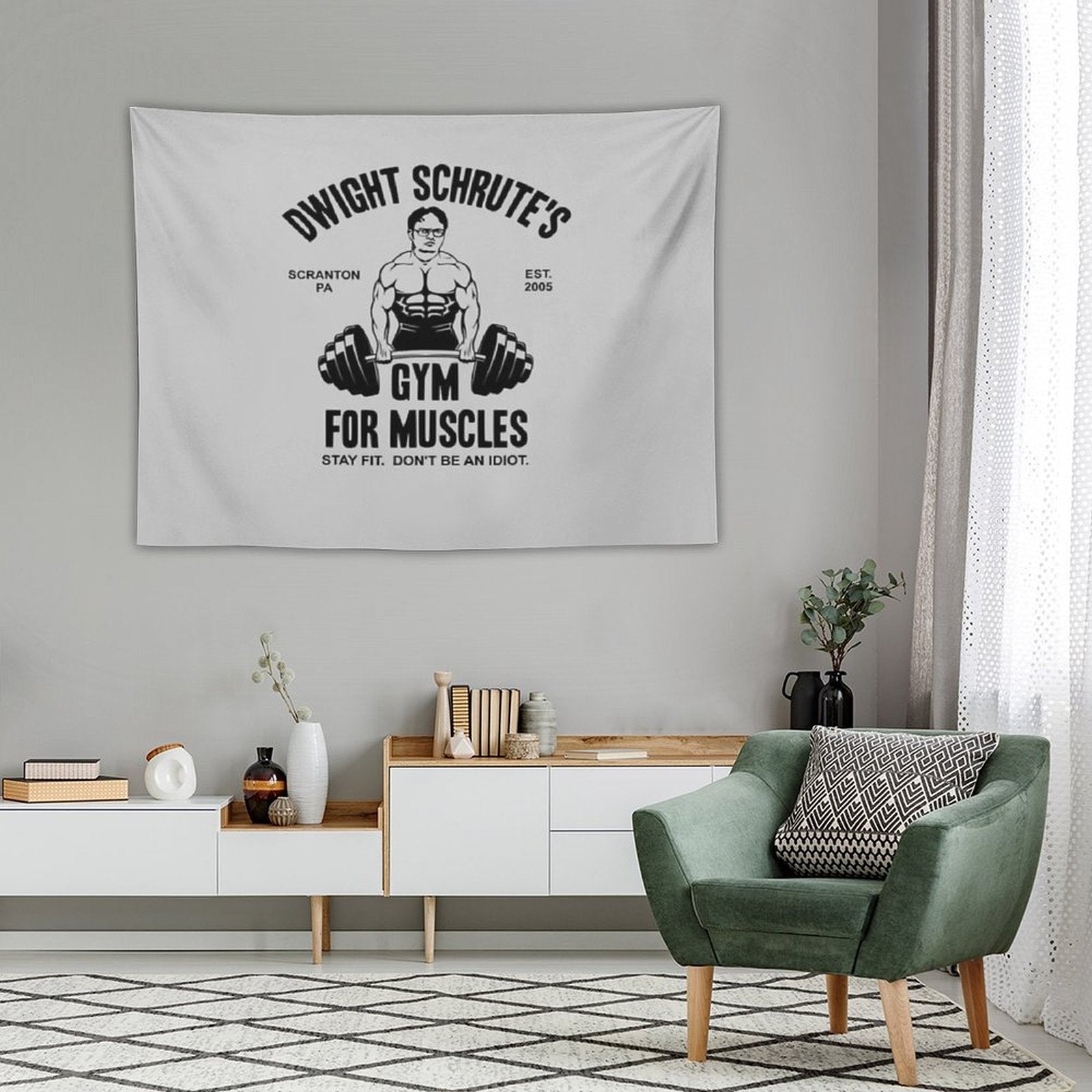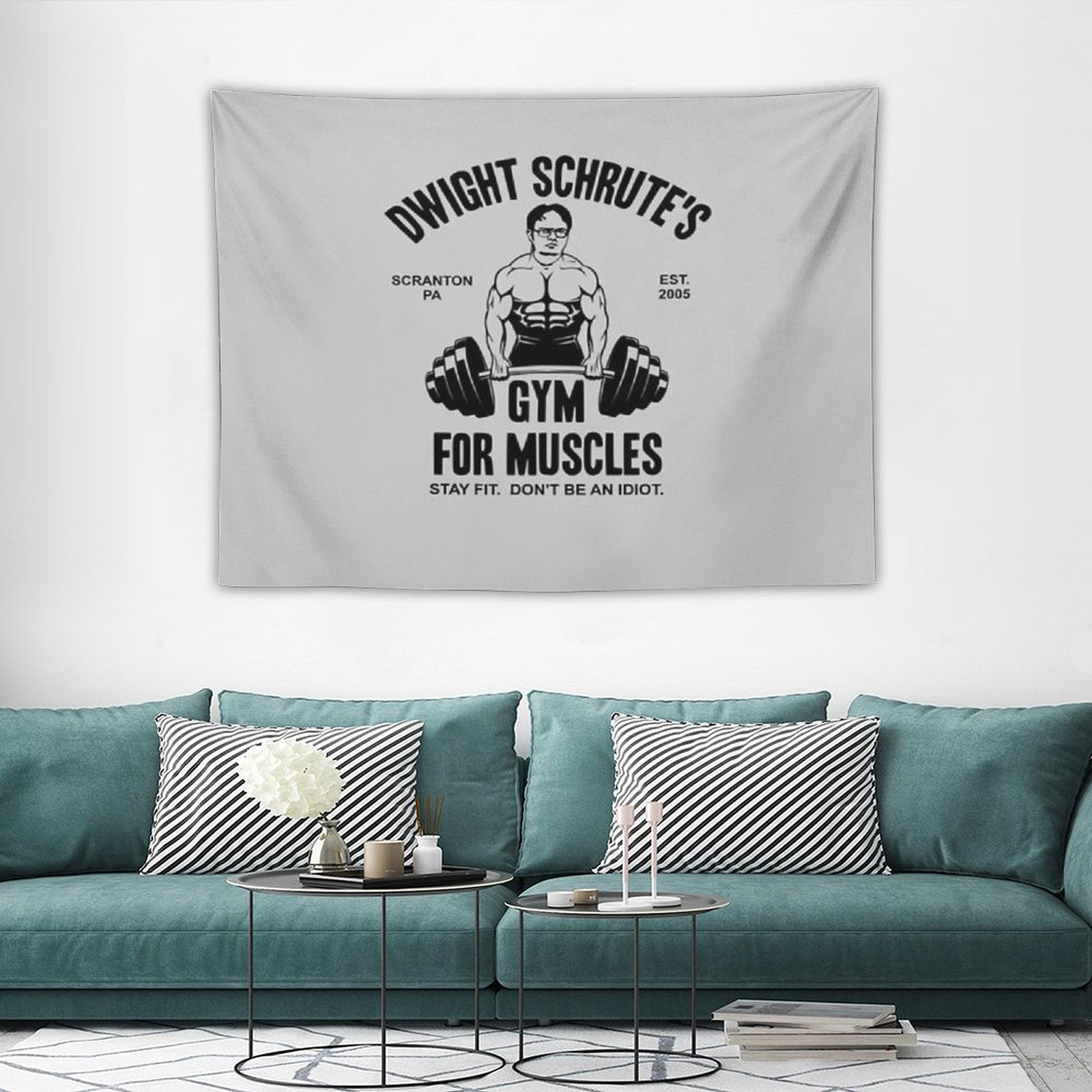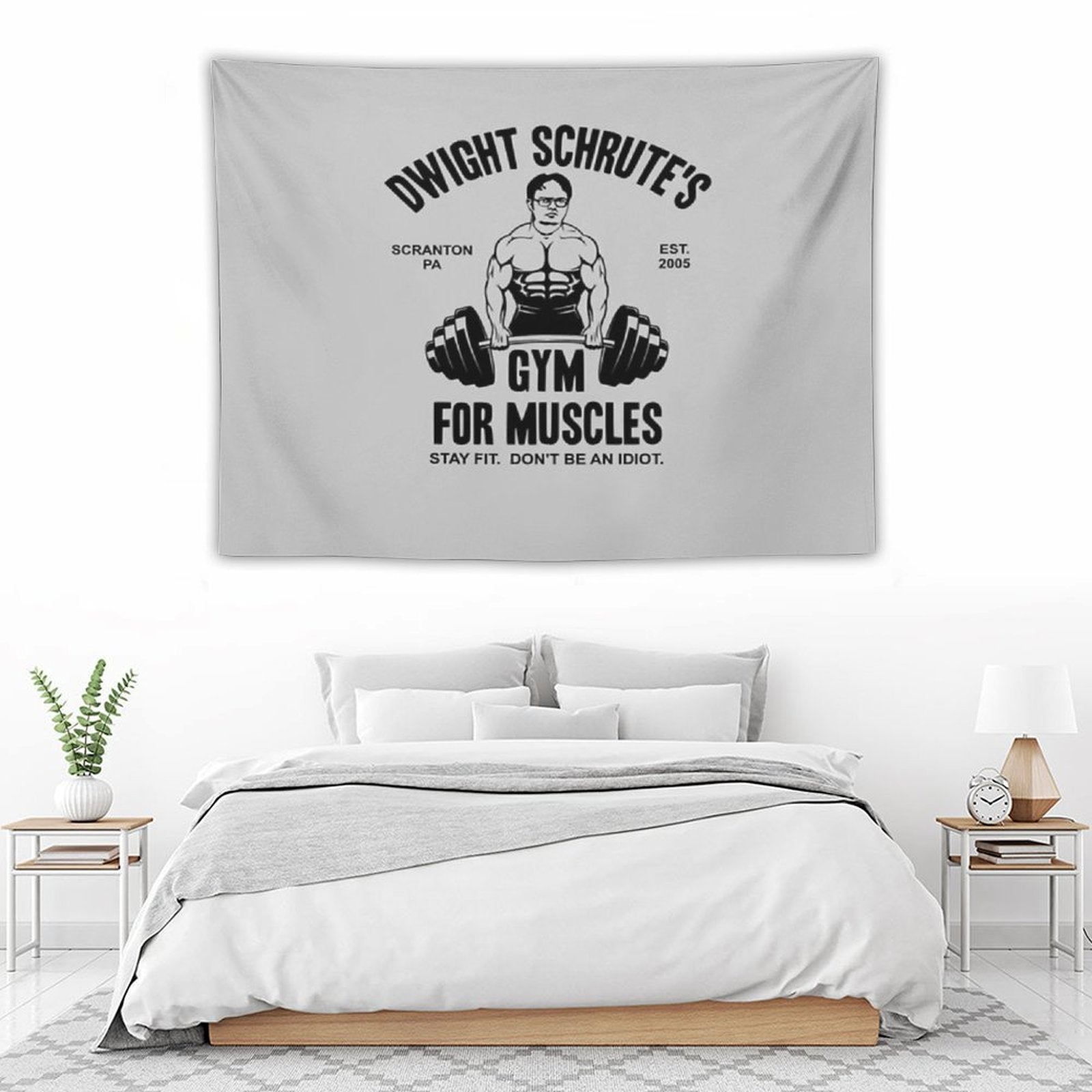 💓【MULTI-FUNCTION】 Used "Dwight Schrute Gym For Muscles Tapestry" to decorate your bedroom, college dorm, room, living room, kitchen wall, can be used as tapestry or wall hanging, bedspread, tablecloth, dormitory decoration, beach shawl, tablecloth, etc.