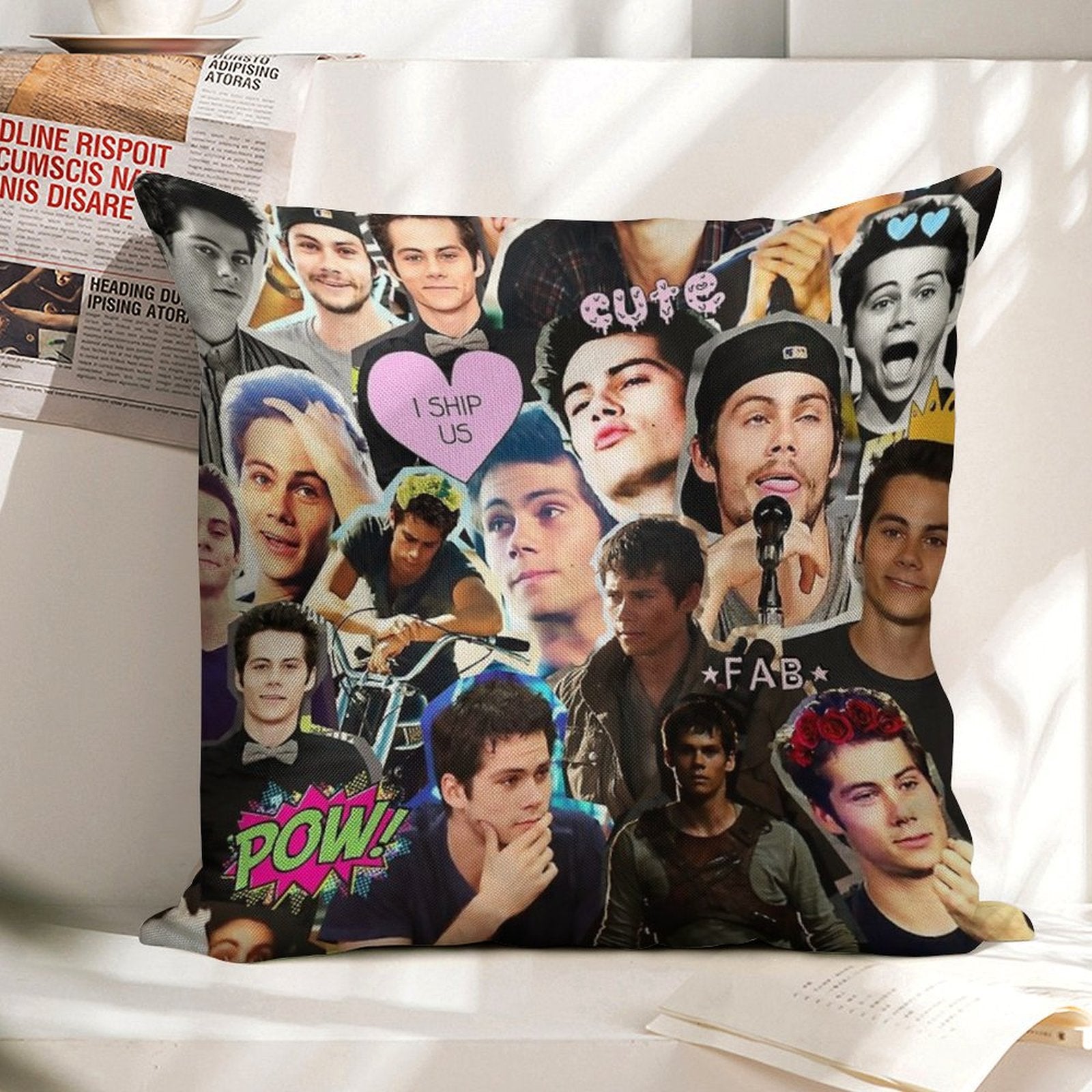 Dylan O'Brien Collage Linen Throw Pillow Cover