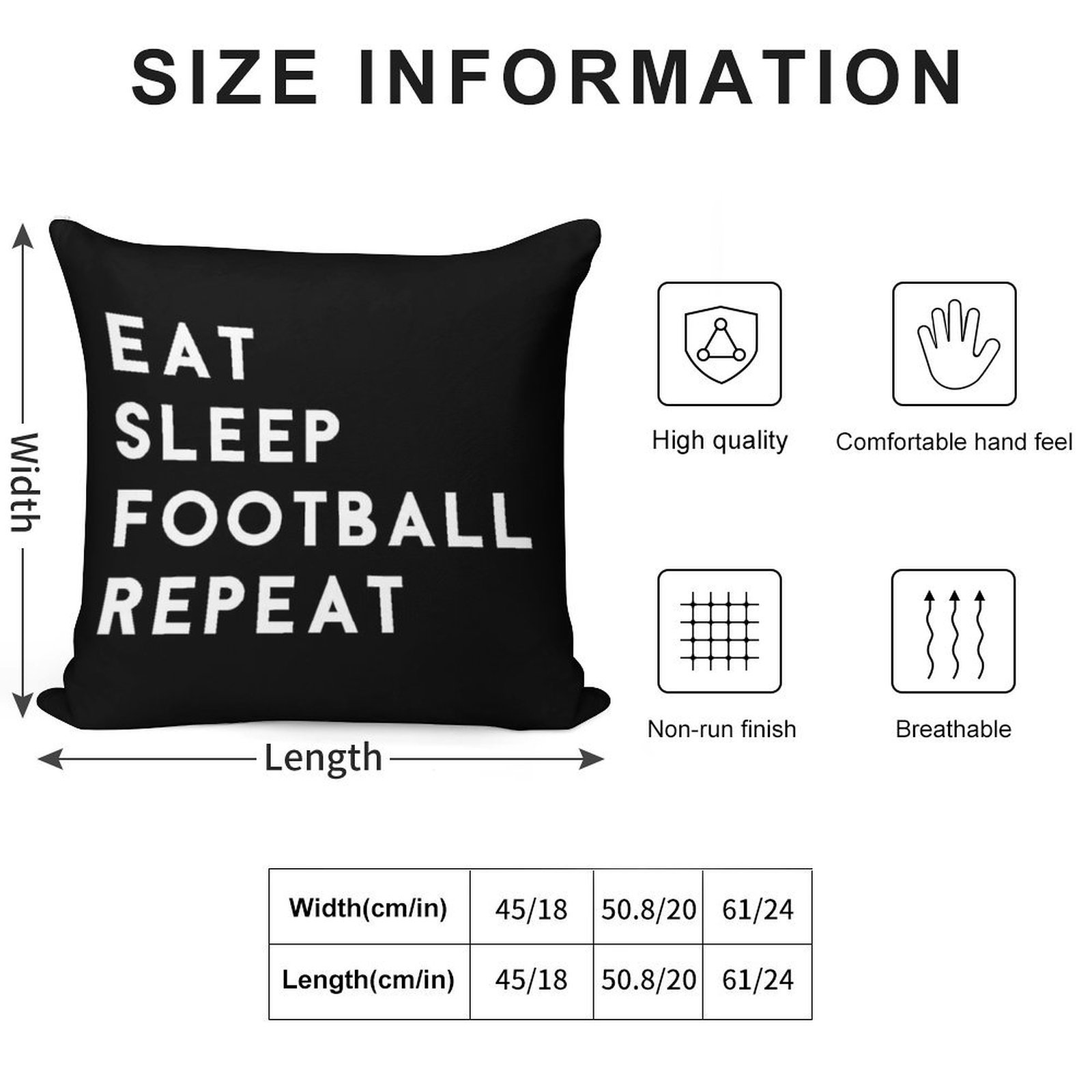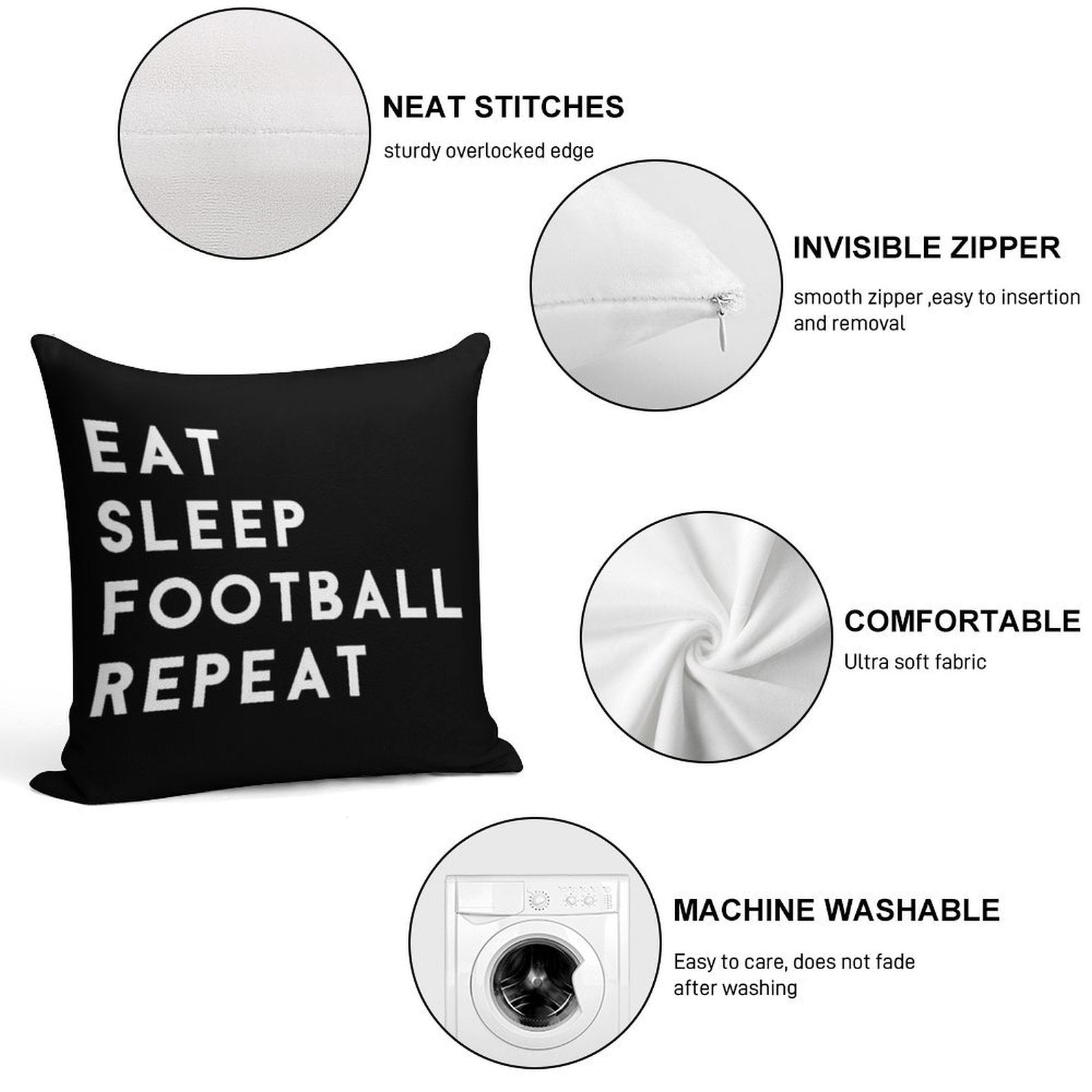 Eat Sleep Football Repeat Soft Short Plush Fabric Throw Pillow