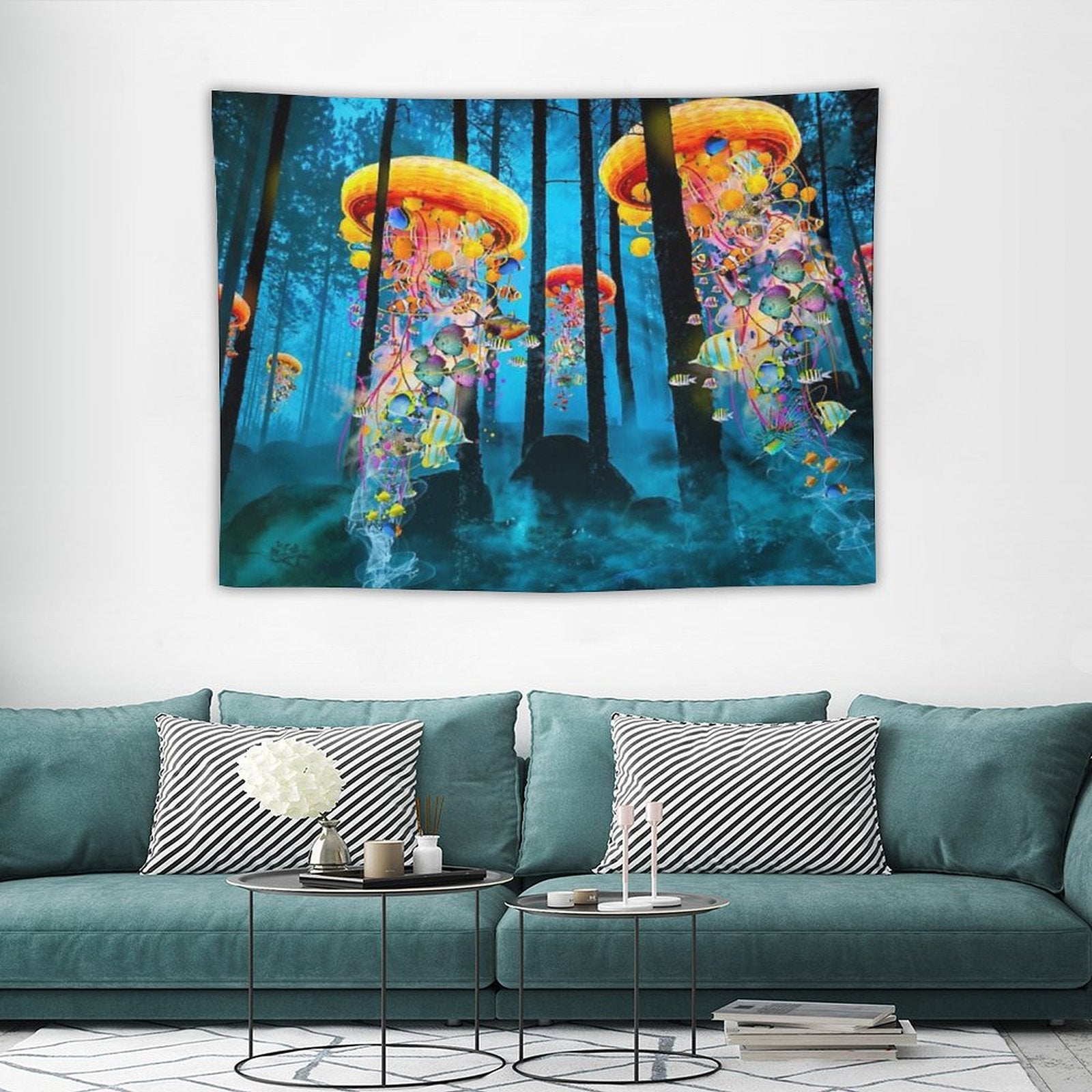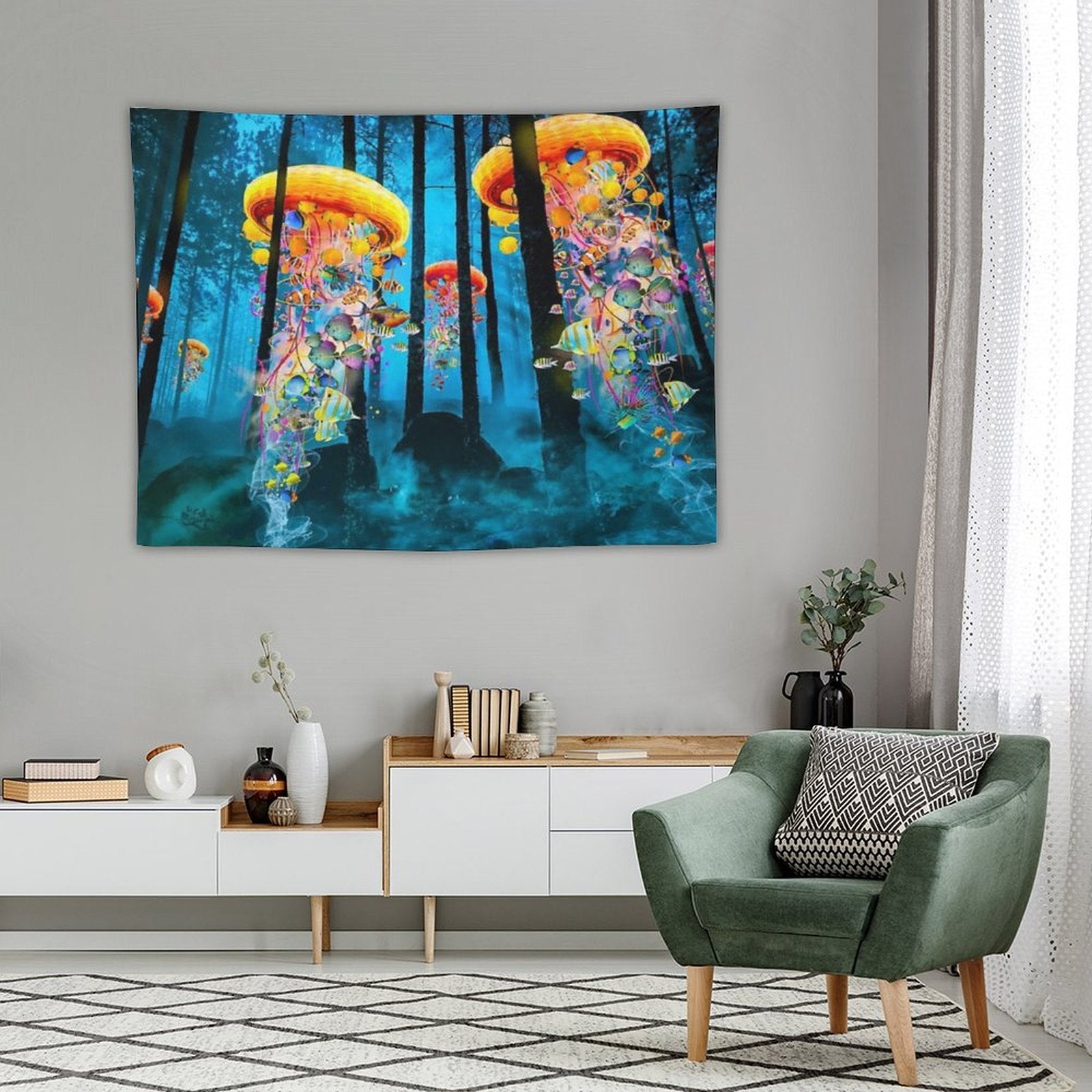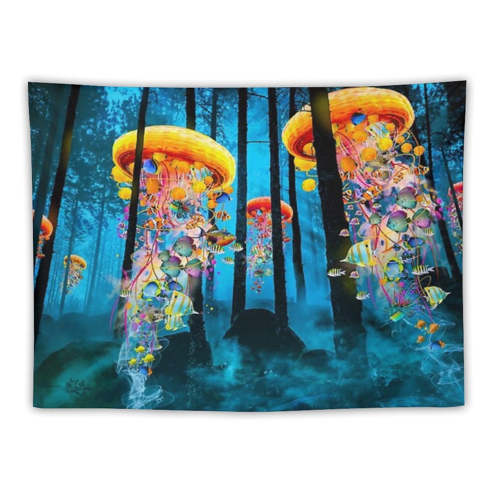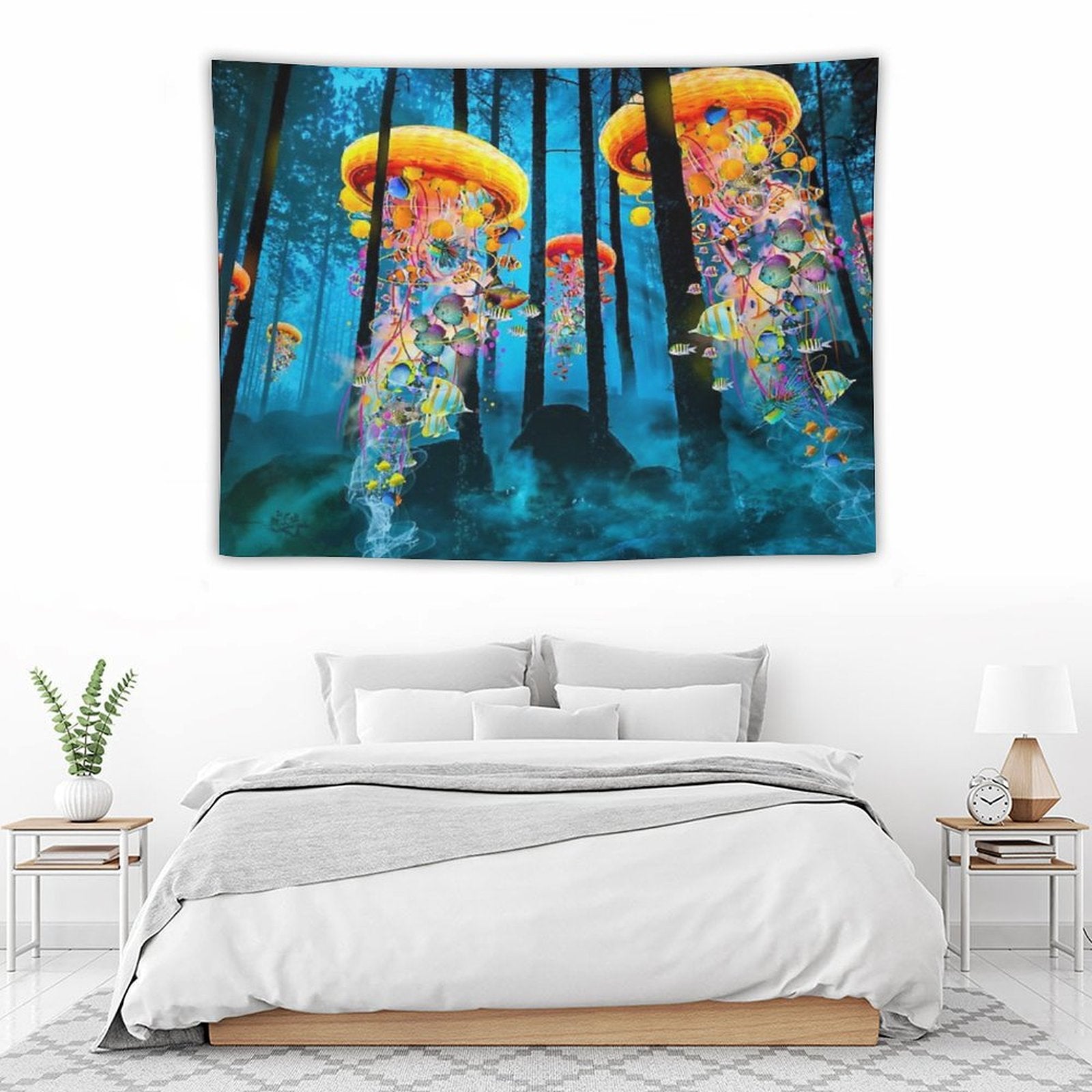 💓【MULTI-FUNCTION】 Used "Electric Jellyfish Worlds in A New Forest Tapestry" to decorate your bedroom, college dorm, room, living room, kitchen wall, can be used as tapestry or wall hanging, bedspread, tablecloth, dormitory decoration, beach shawl, tablecloth, etc.