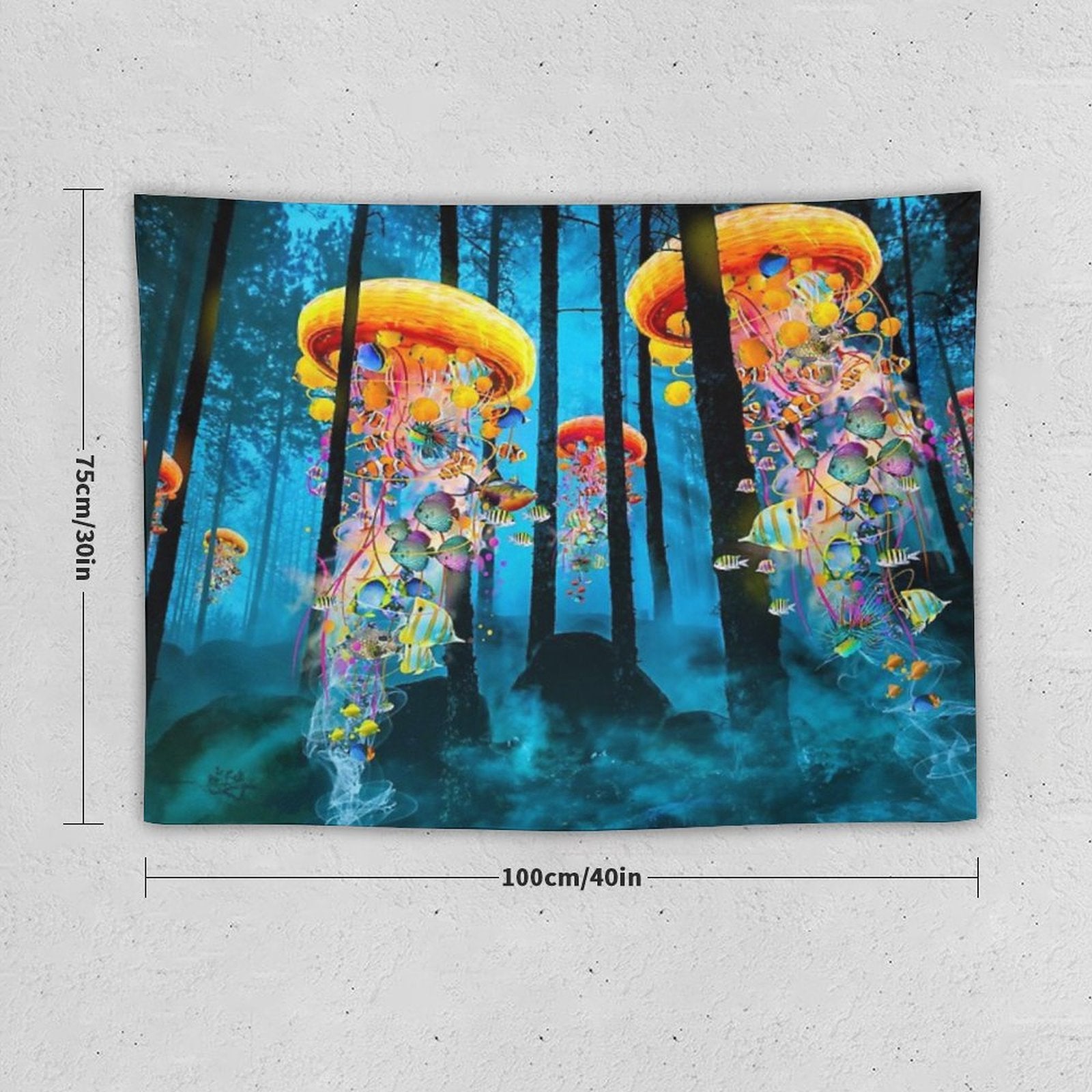 💝【Quality Material】"Electric Jellyfish Worlds in A New Forest Tapestry" made of 100% polyester, bright colors, durable, lightweight, skin-friendly, soft texture, easy to hang or pack.