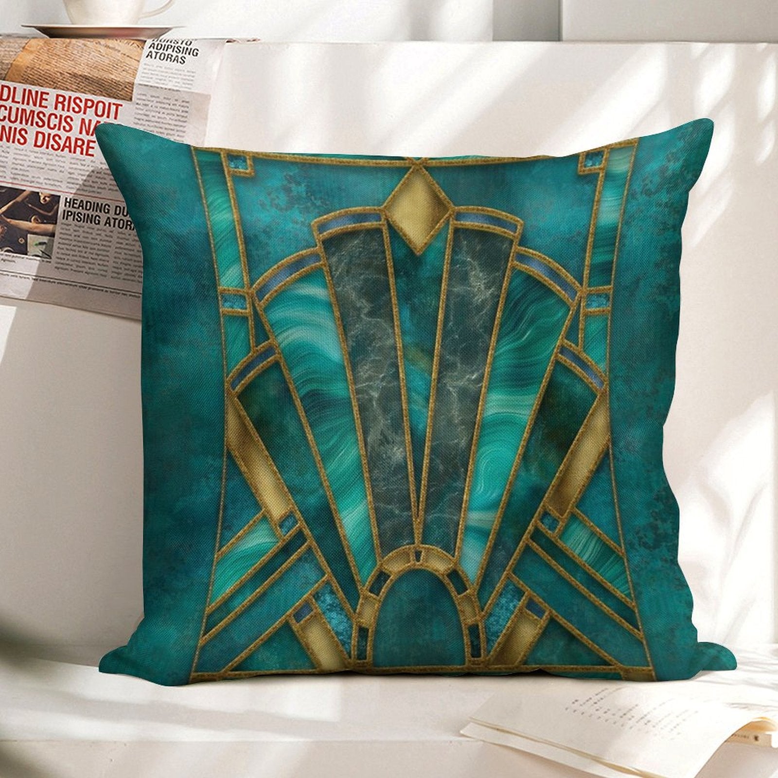 Elegant Stained Glass Art Deco Window With Marble And Gemstone Linen Throw Pillow Cover