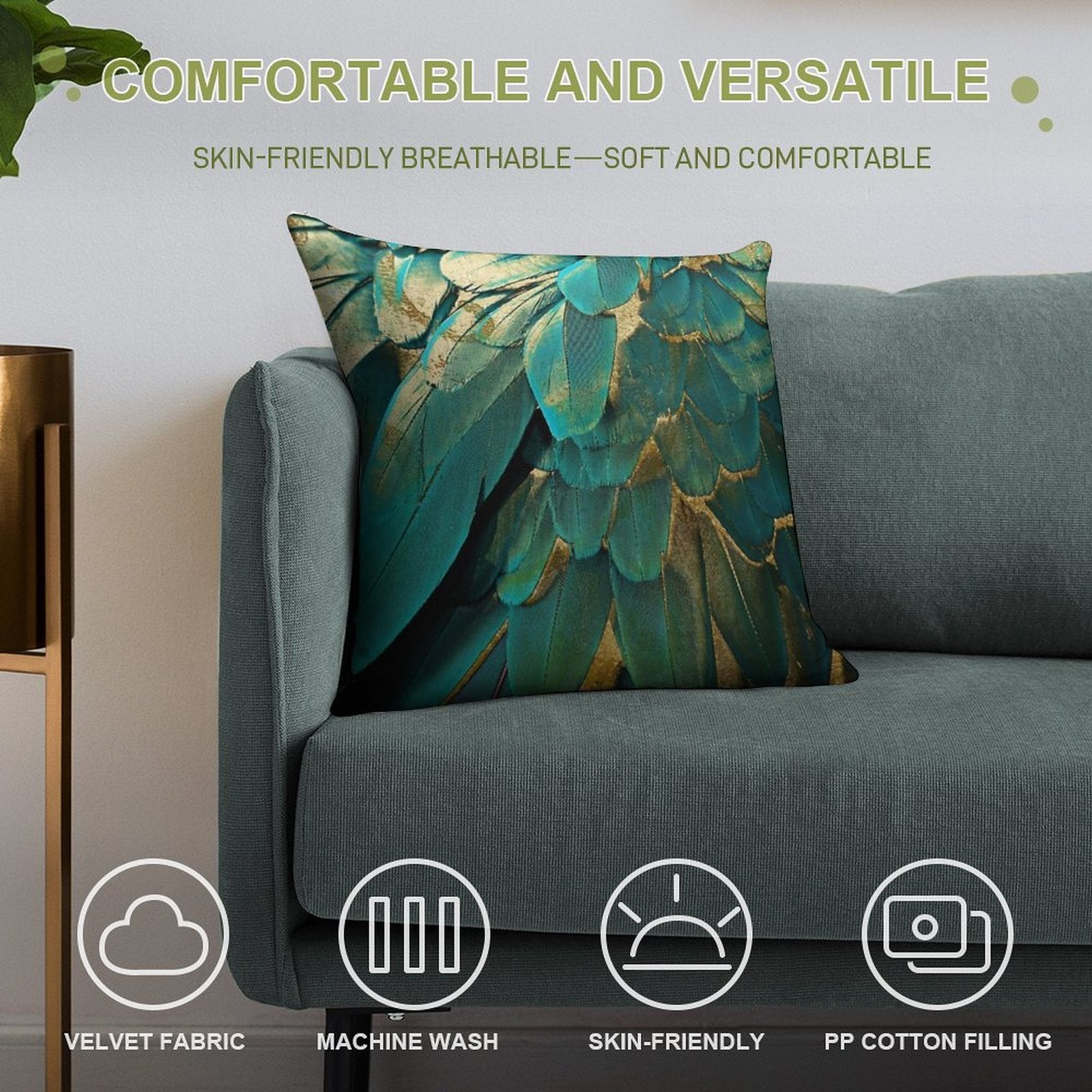 Feather Glitter Teal And Gold Soft Home Decor Throw Pillow