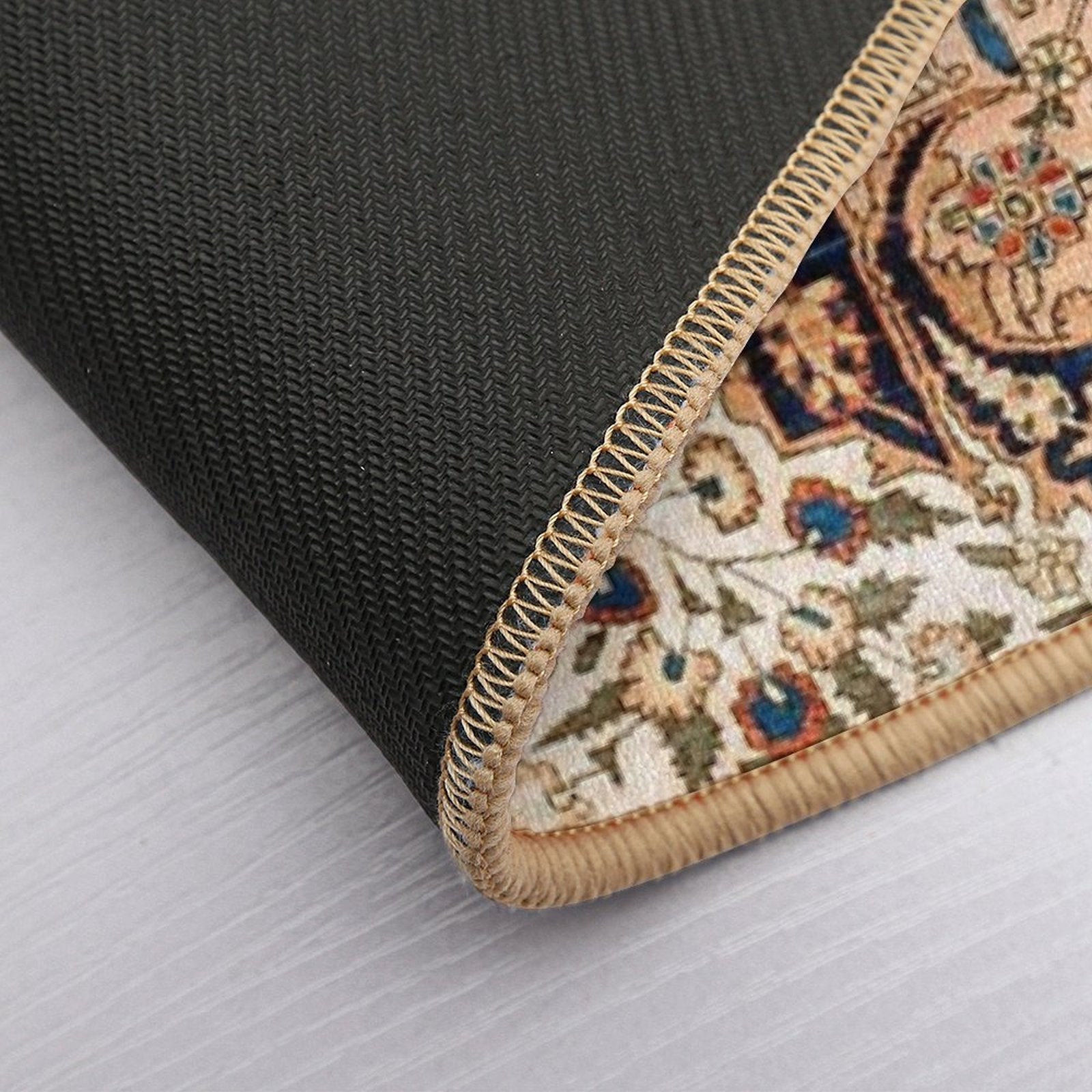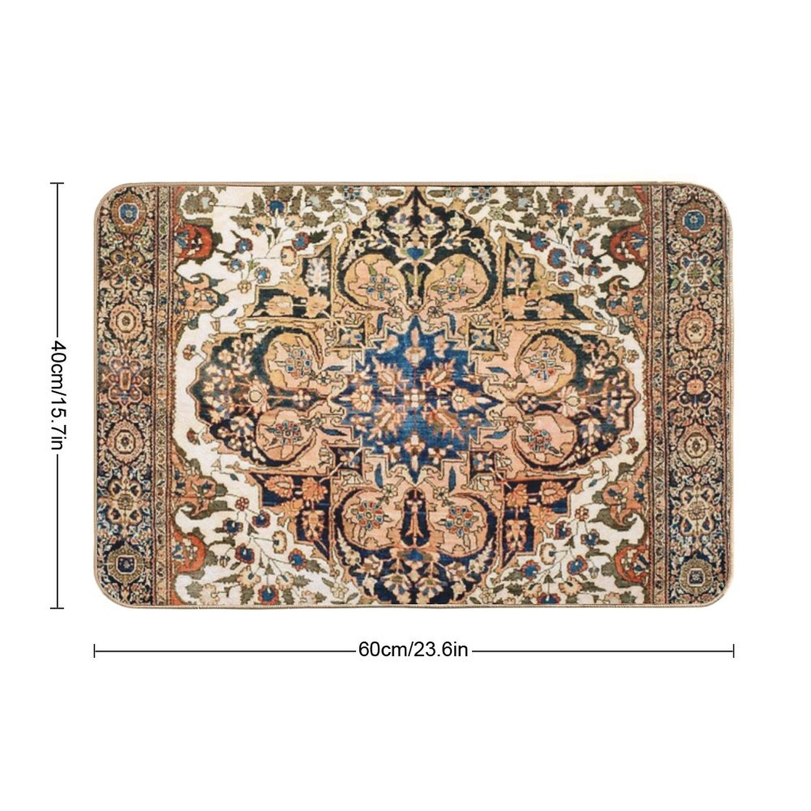 - Non-slip rubber backing grips floors securely, ideal for Ferahan Arak Antique West Persian Rug Print Mat placements on tiles, wood, or marble.