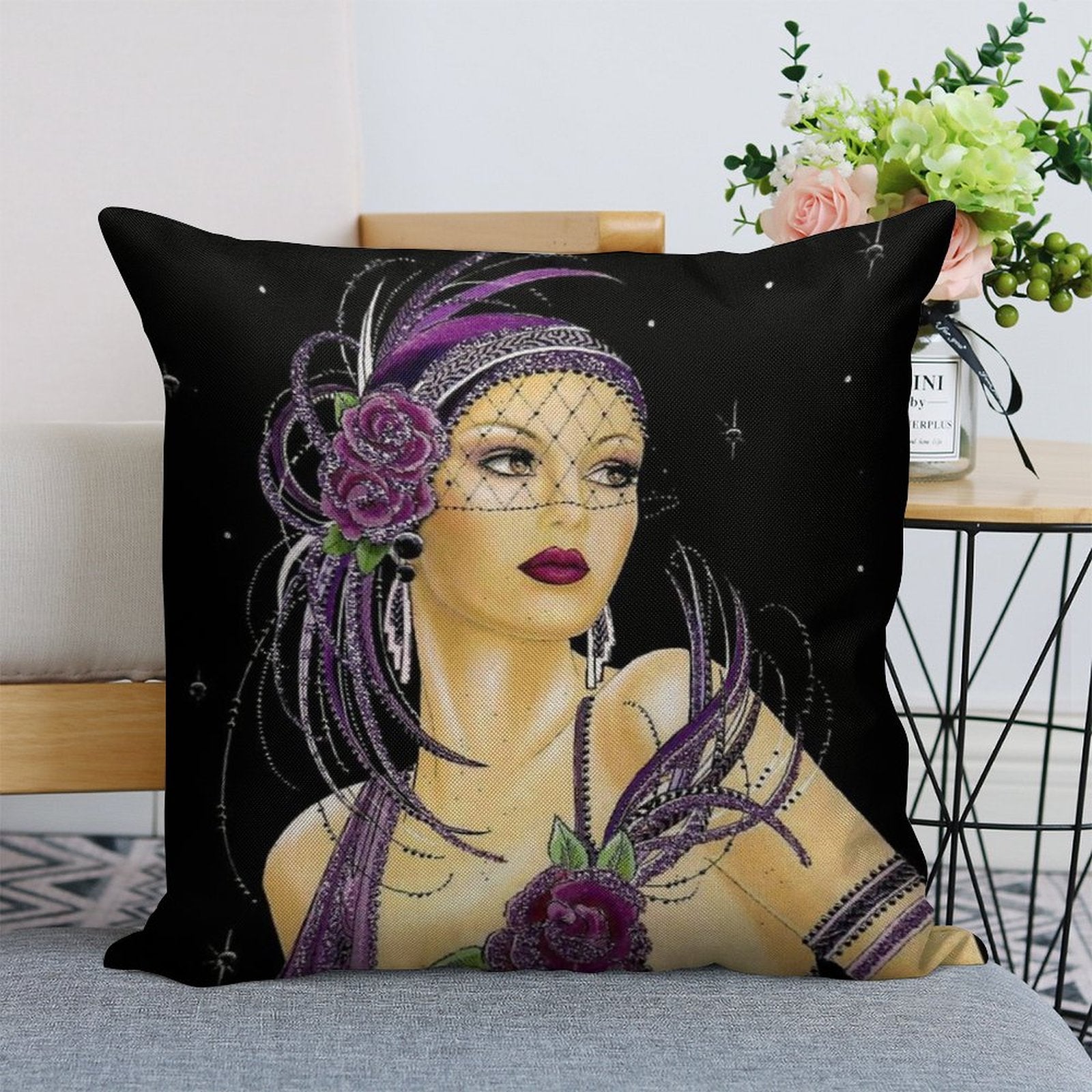 FLAPPER Vintage 1930 Art Deco Print Linen Throw Pillow Cover