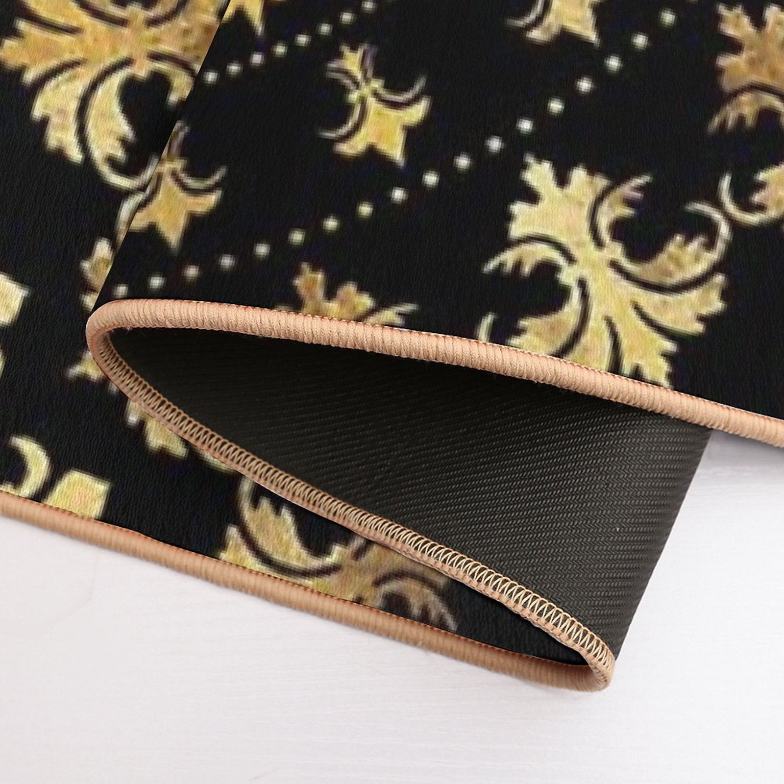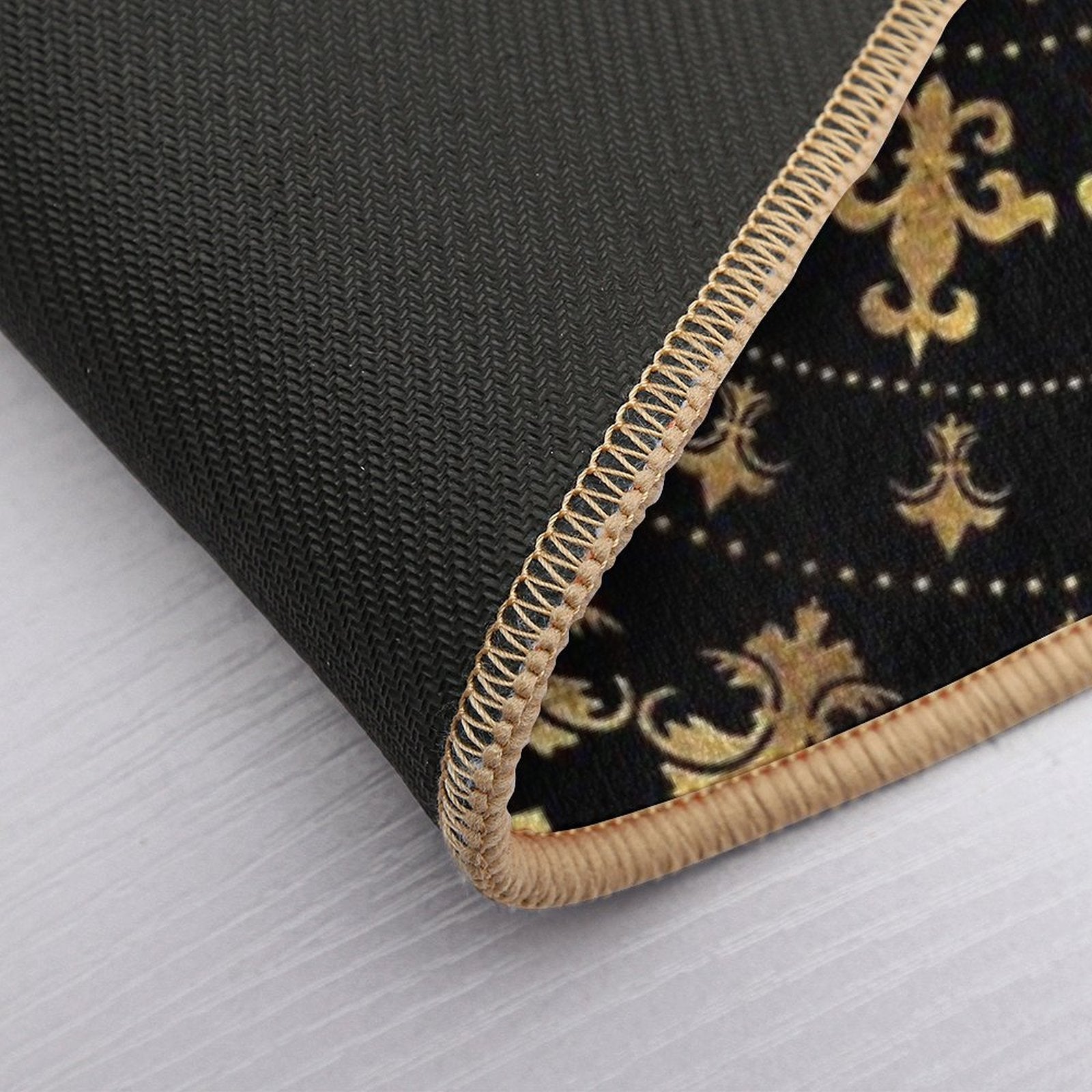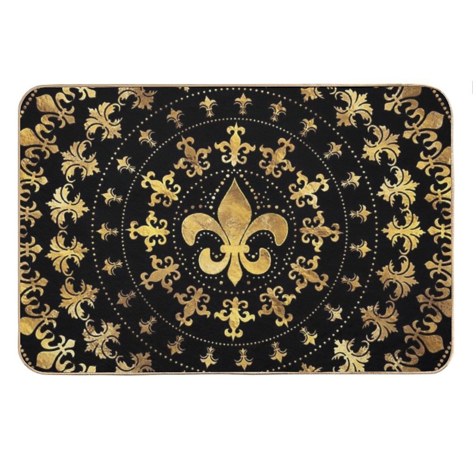 - Non-slip rubber backing grips floors securely, ideal for Fleur-de-lis - Circular Ornament - Gold And Black Mat placements on tiles, wood, or marble.