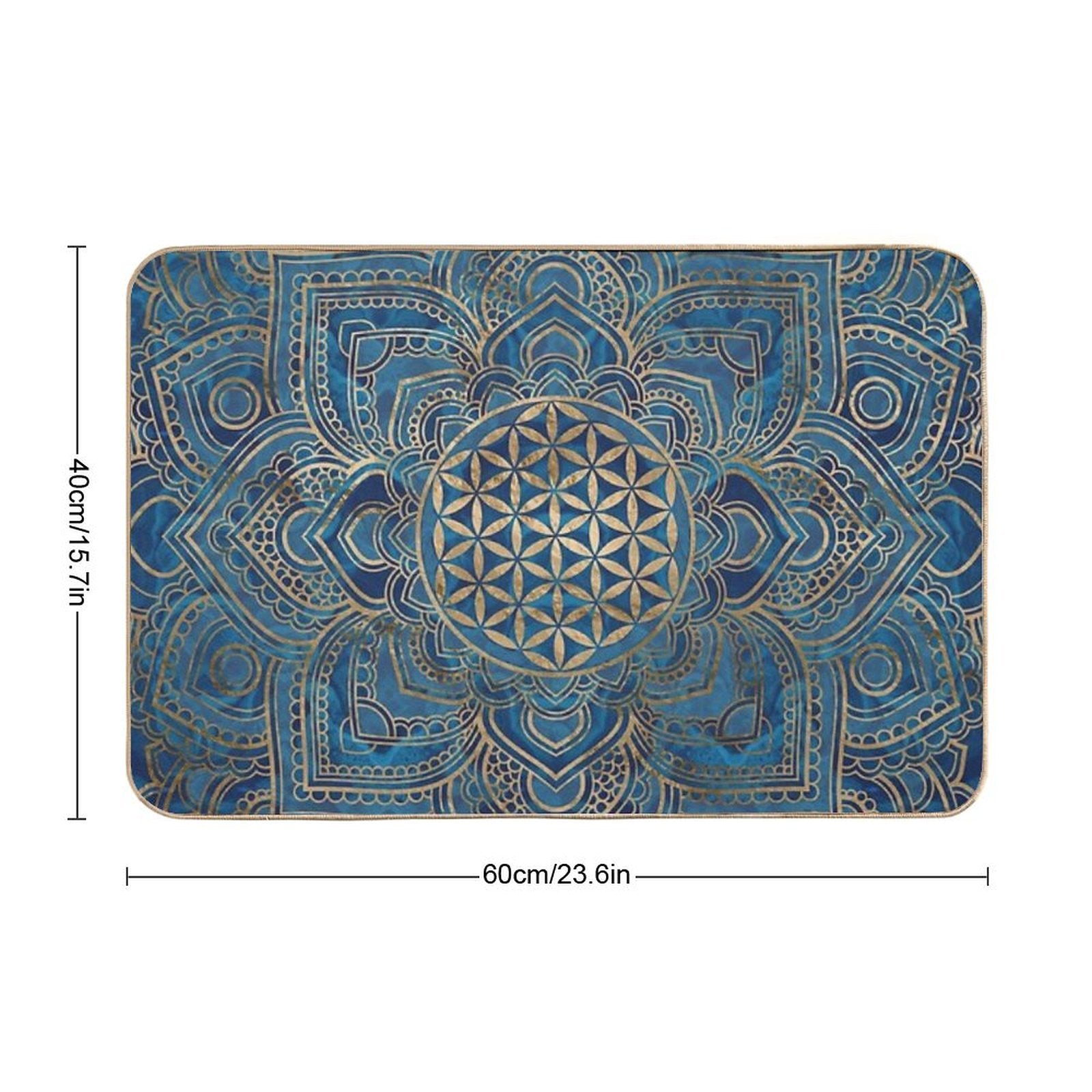 Secure Your Flower of Life in Lotus Mandala - Blue Marble And Gold Mat Today – [Shop Now] & Defend Floors in Style!