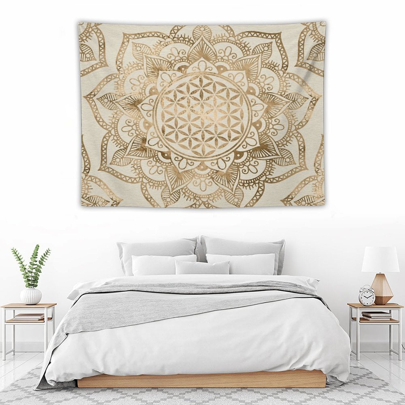 💓【MULTI-FUNCTION】 Used "Flower of Life in Lotus - Pastel Golds And Canvas Tapestry" to decorate your bedroom, college dorm, room, living room, kitchen wall, can be used as tapestry or wall hanging, bedspread, tablecloth, dormitory decoration, beach shawl, tablecloth, etc.