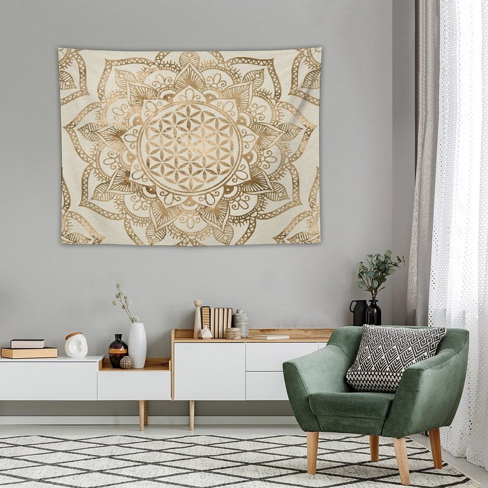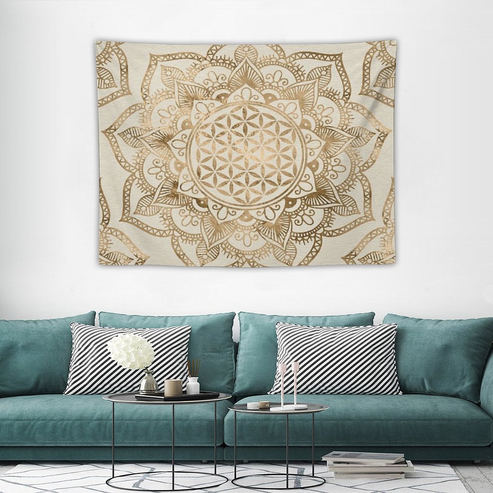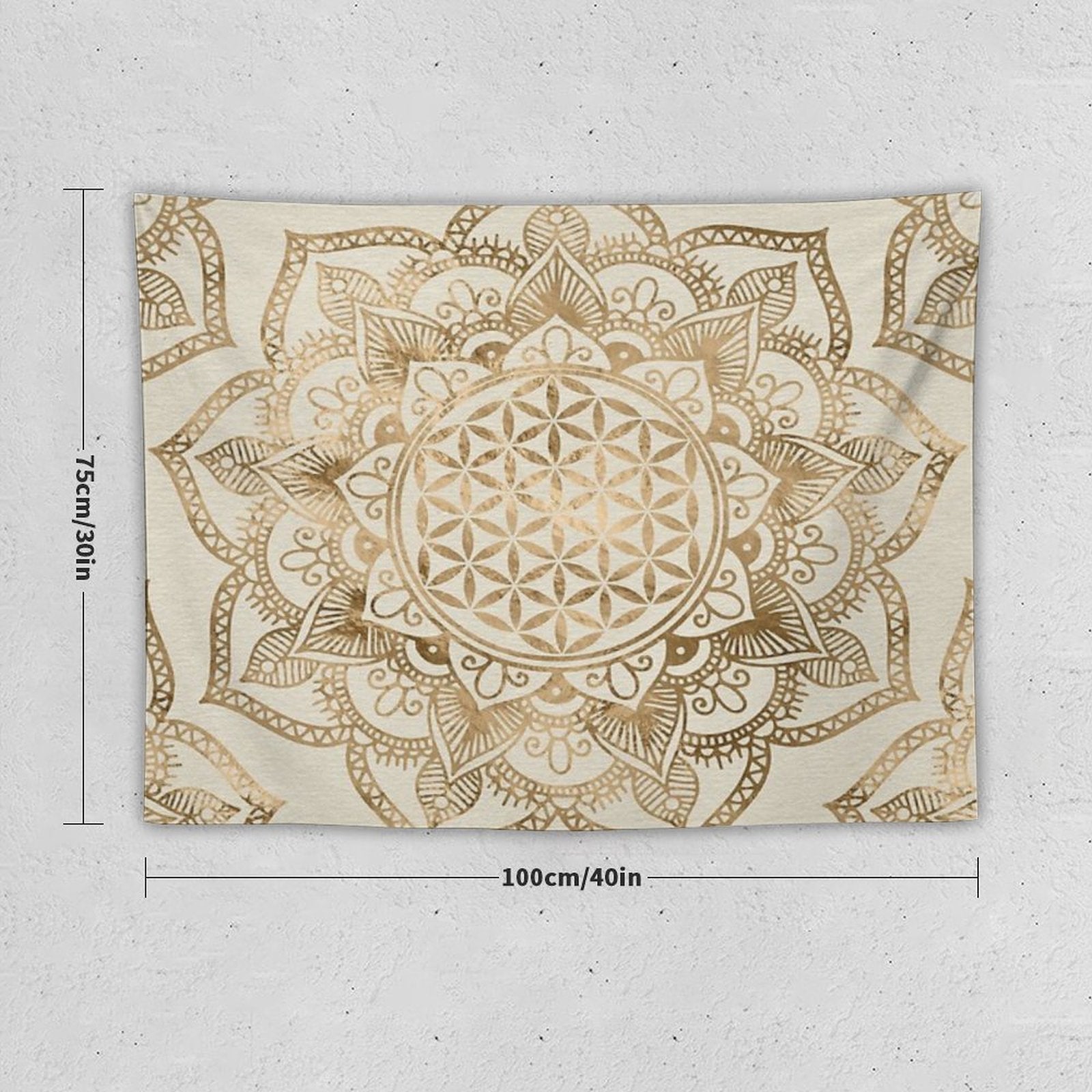BionZax's Flower of Life in Lotus - Pastel Golds And Canvas Tapestry for Bedroom, College Dorm. Flower of Life in Lotus - Pastel Golds And Canvas Tapestry to decorate your bedroom, college dorm, living room, or kitchen wall, it is the best gift for funny, meme, aesthetic, trendy, simple, fashion, music, abstract, fantasy, modern tapestry for girls, men, boys, teen, women, kids.