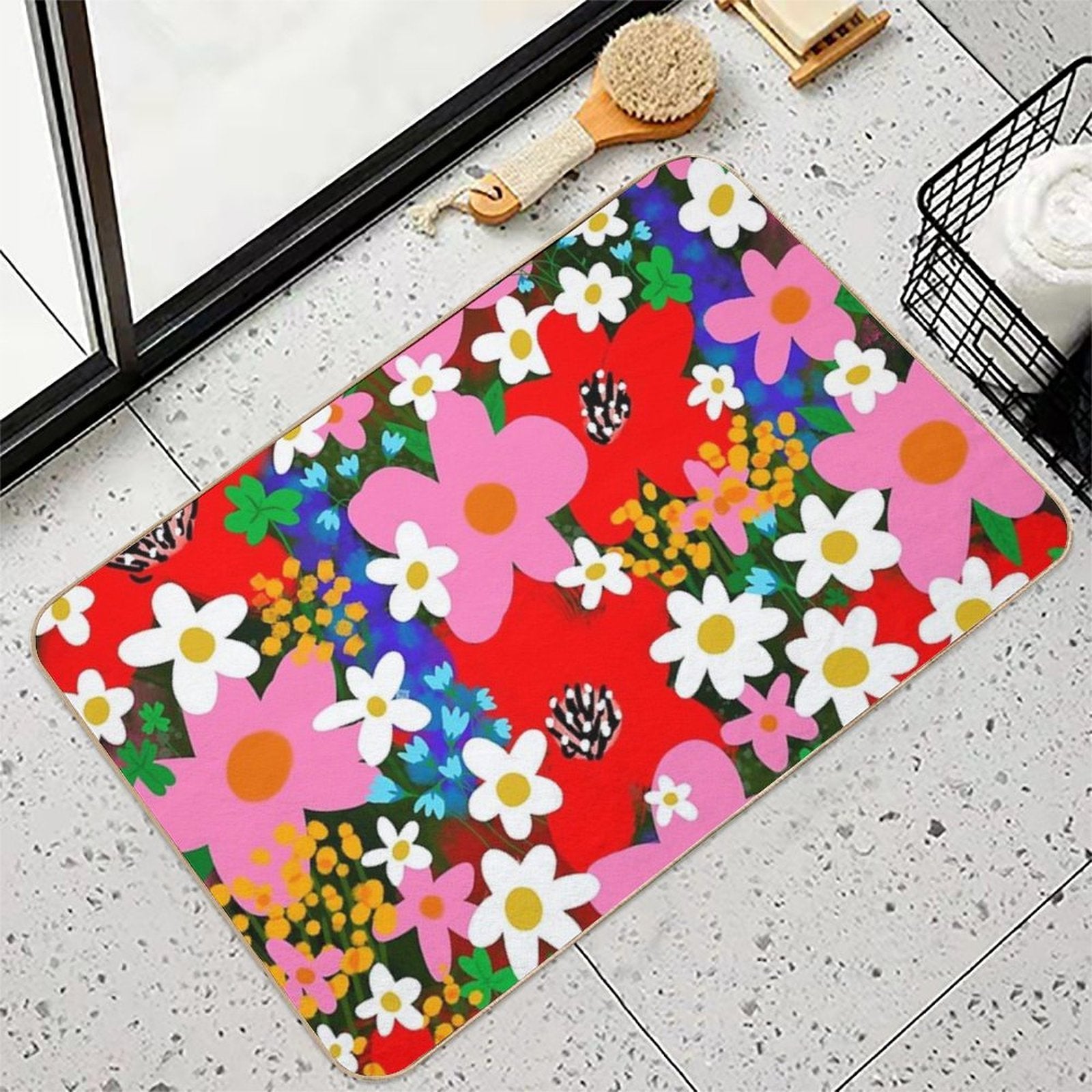 - Rapid-drying flannel soaks up water 3x faster than standard mats, preventing puddles in Flower Power! bathrooms or poolside areas.