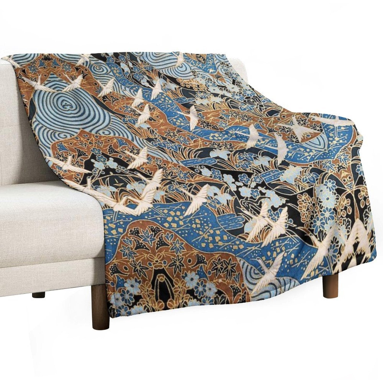 - Perfect for chilly movie nights, camping trips, or adding a cozy touch to your FLYING WHITE CRANES ON BLUE WATER AND SPRING FLOWERS Antique Japanese Floral-styled living space.
