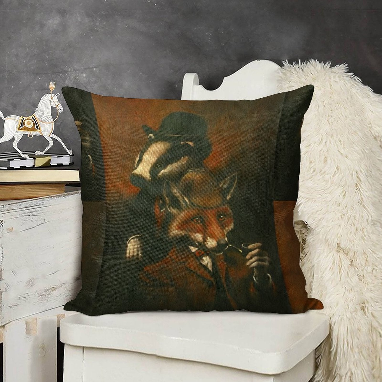 - Machine or hand washable (max 45°C). Avoid bleach and prolonged soaking to preserve the vibrant texture of your Fox And Badger Holmes And Watson Luxury Pillow Cover.