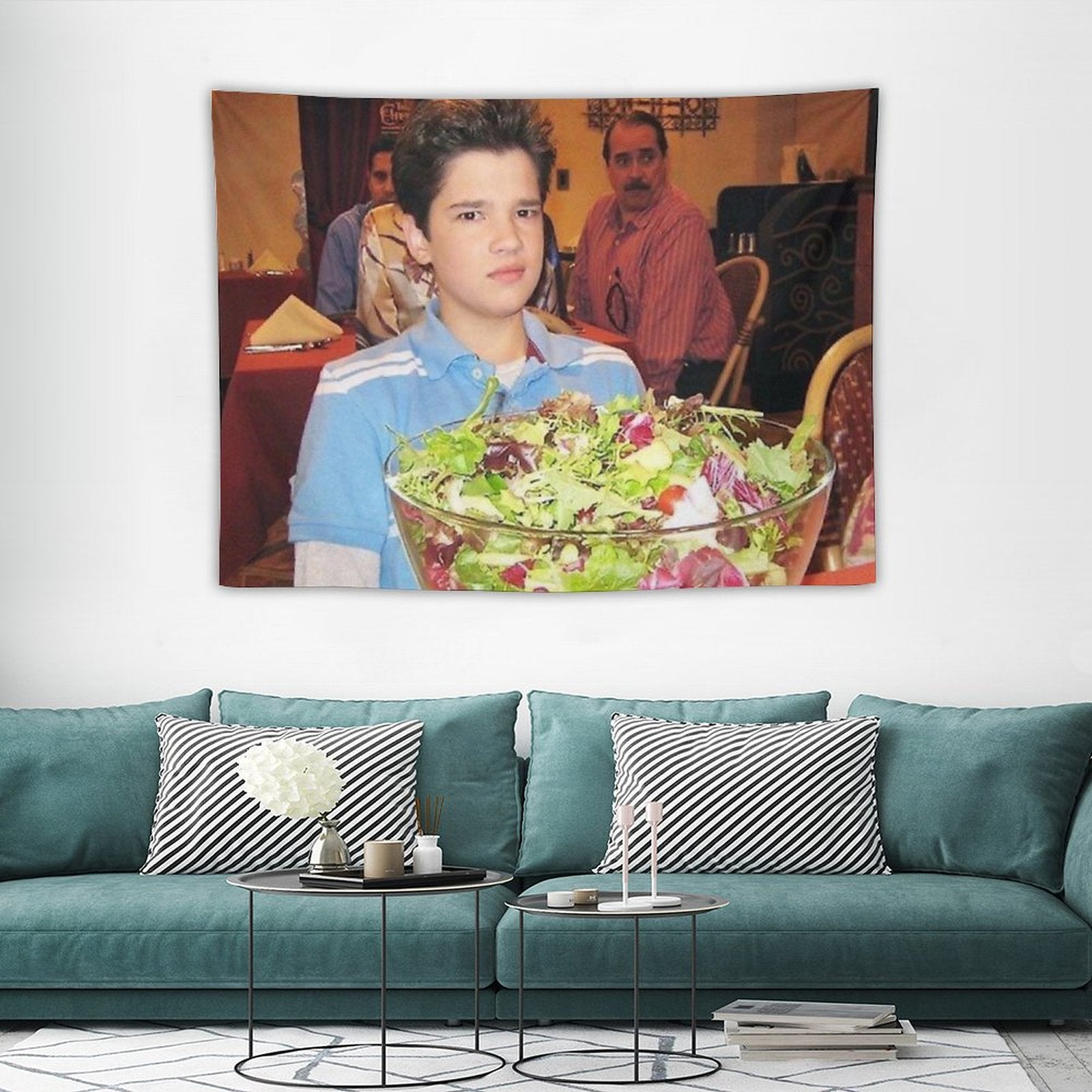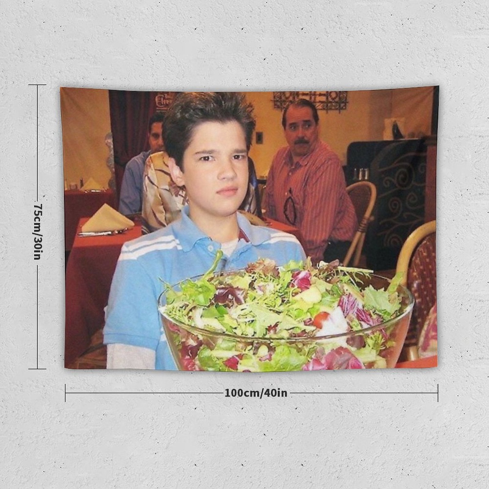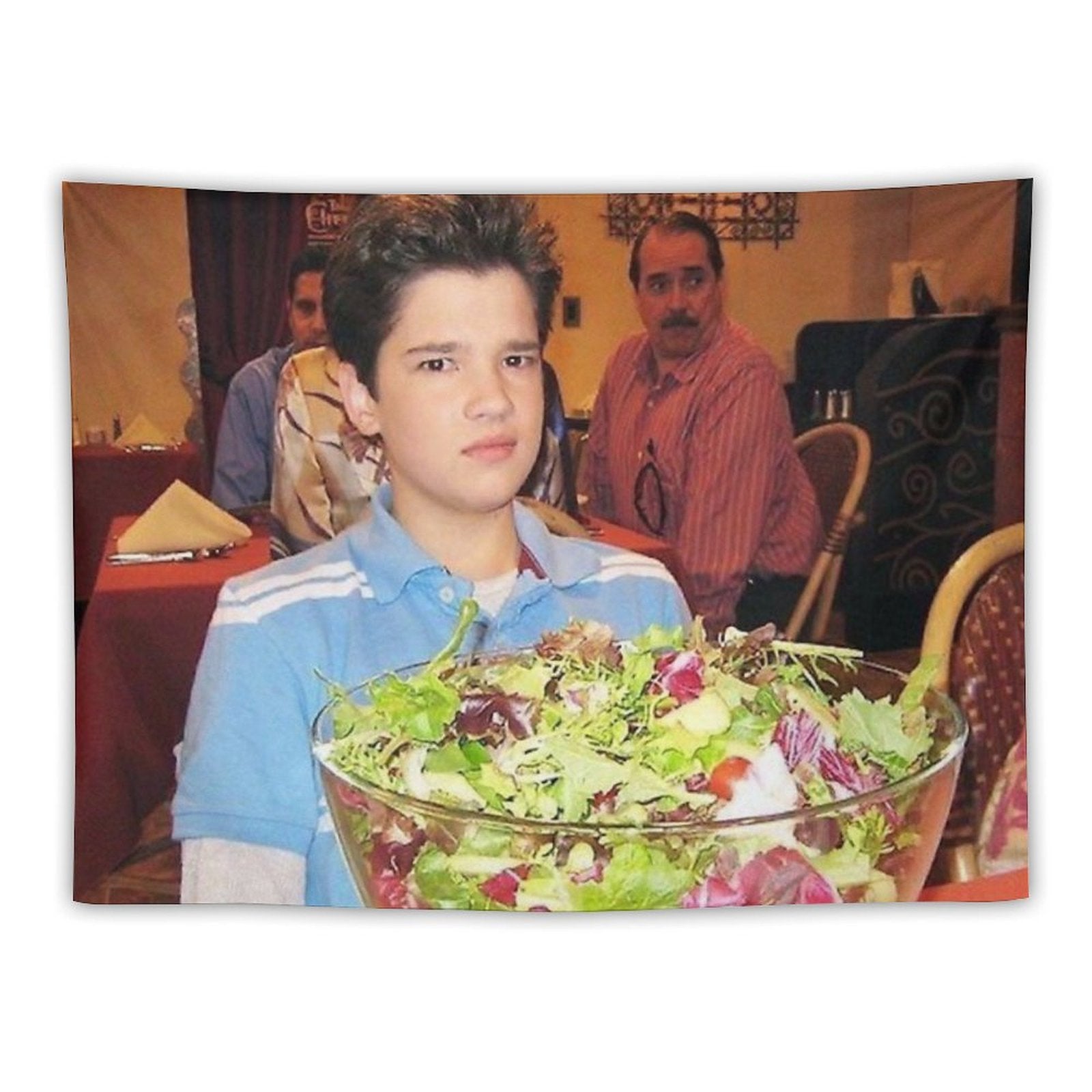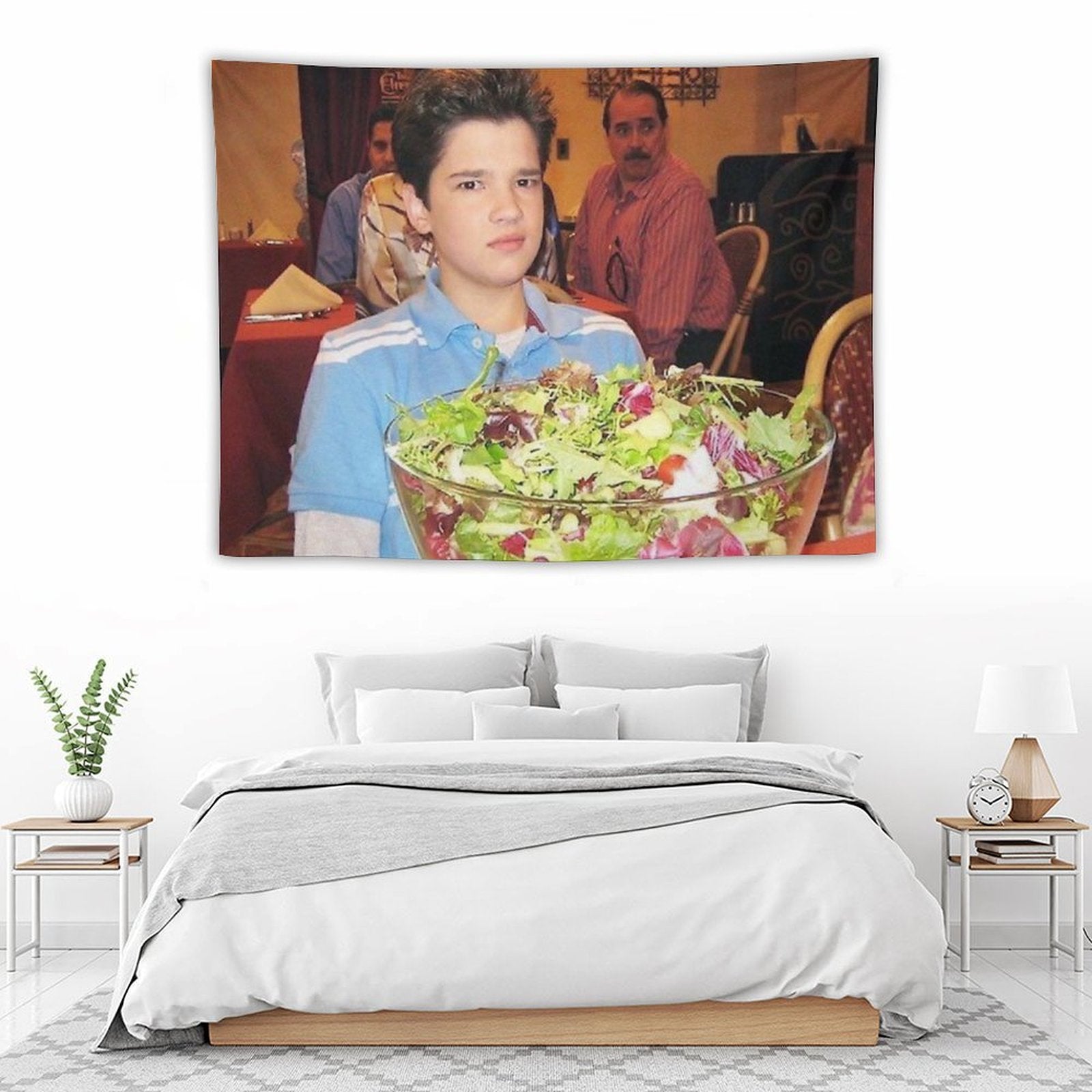 BionZax's Freddie Benson with A Salad Tapestry for Bedroom, College Dorm. Freddie Benson with A Salad Tapestry to decorate your bedroom, college dorm, living room, or kitchen wall, it is the best gift for funny, meme, aesthetic, trendy, simple, fashion, music, abstract, fantasy, modern tapestry for girls, men, boys, teen, women, kids.