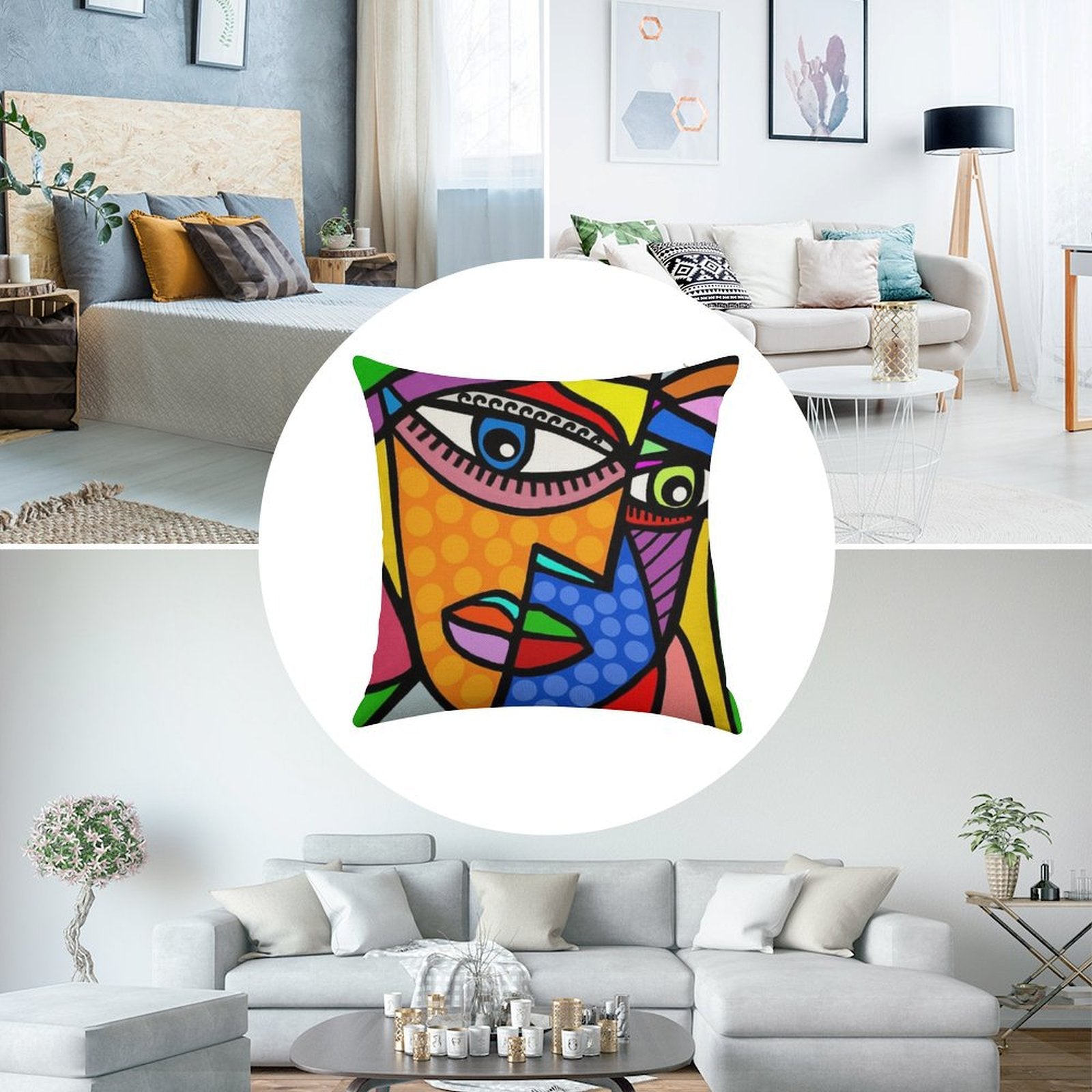 - Machine or hand washable (max 45°C). Avoid bleach and prolonged soaking to preserve the vibrant texture of your Funky Abstract Style Art Face with Dots And Stripes Luxury Pillow Cover.