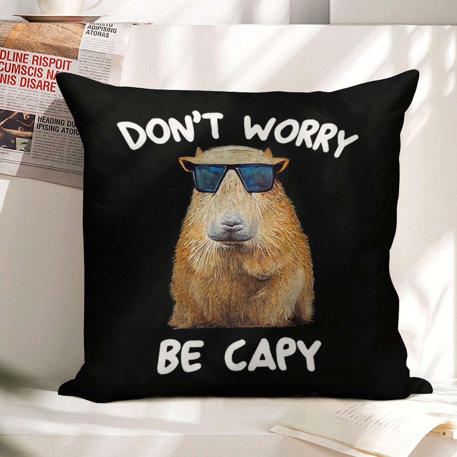 Funny Capybara Dont Worry Be Capy Funny Rodent Linen Throw Pillow Cover