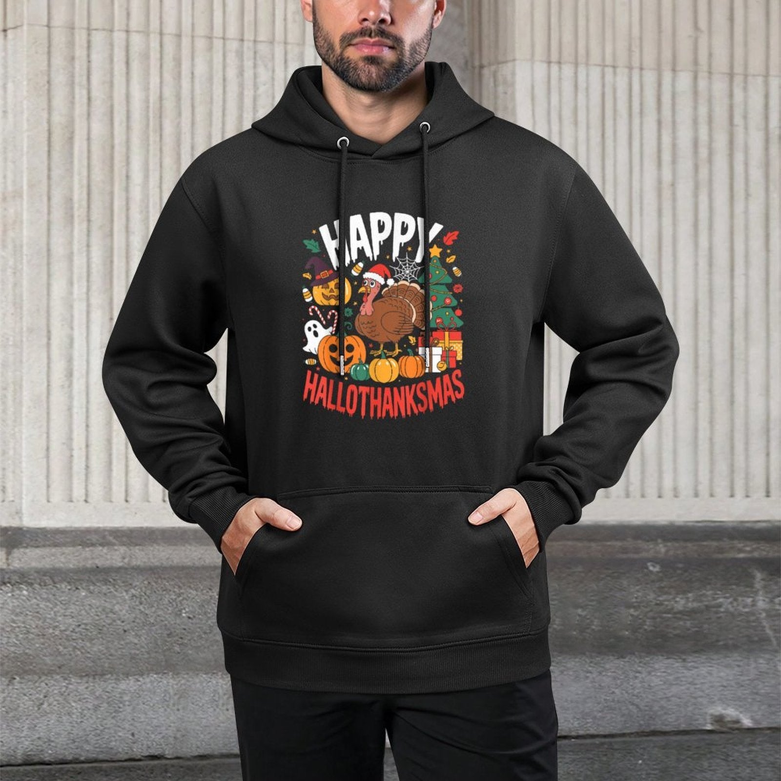 Elevate your casual wardrobe with the Funny Halloween Thanksgiving Christmas Happy HalloThanksMas Hoodie – crafted from premium 60% cotton and 40% polyester for everyday comfort and durability. Designed for Funny Halloween Thanksgiving Christmas Happy HalloThanksMas style enthusiasts who value both fit and function, this unisex sweatshirt features a relaxed silhouette, breathable fabric, and versatile streetwear appeal. Whether you're exploring the city, relaxing at home, or meeting friends for a Funny Halloween Thanksgiving Christmas Happy HalloThanksMas weekend outing, this hoodie delivers softness, style, and easy care in one timeless piece.