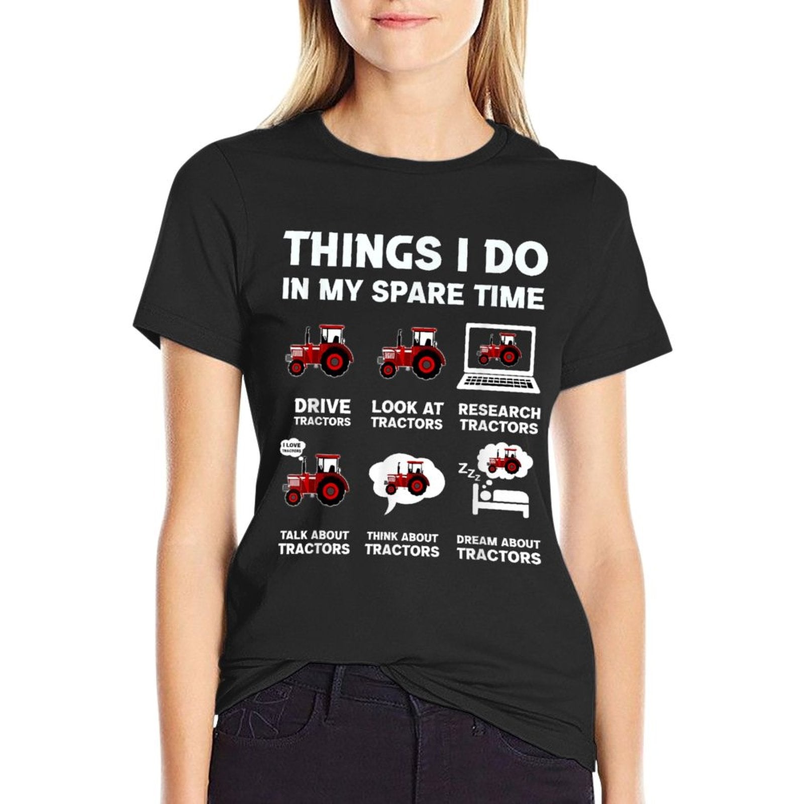 - Avoid bleach to preserve the Funny Tractors Lover 6 Things I Do In My Spare Time Tractor T-shirt’s bold graphics and cotton integrity.