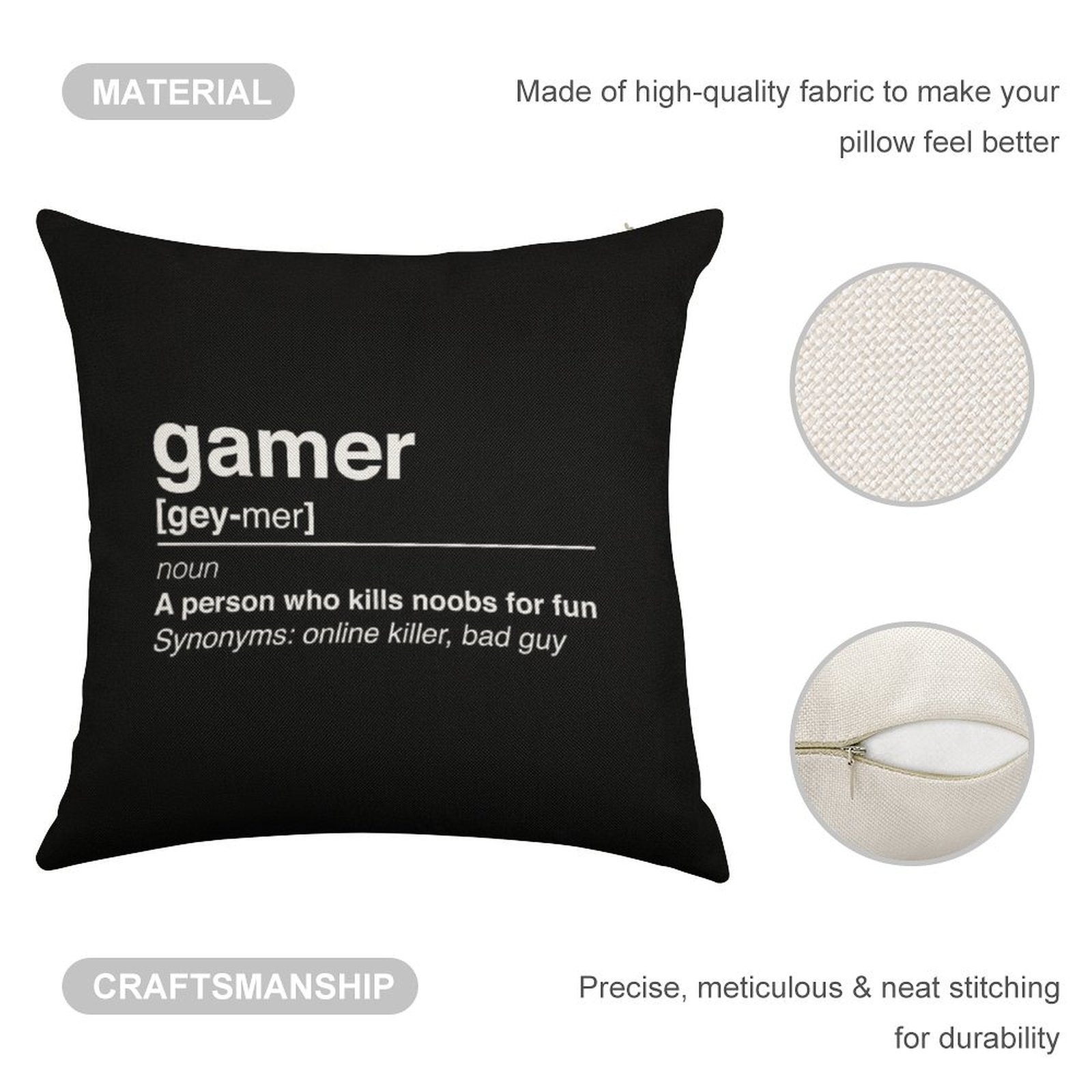 Upgrade your living space with our Gamer Definition Linen Throw Pillow Cover, blending timeless elegance and modern functionality. Crafted from breathable, durable linen-cotton fabric, this Gamer Definition Customizable Home Decor Gift features reinforced edges and a hidden zipper for a flawless finish. Perfect for bedrooms, RVs, or vacation homes, our Gamer Definition Luxury Pillow Cover offers versatility and style, making it ideal for everyday use or heartfelt gifting.