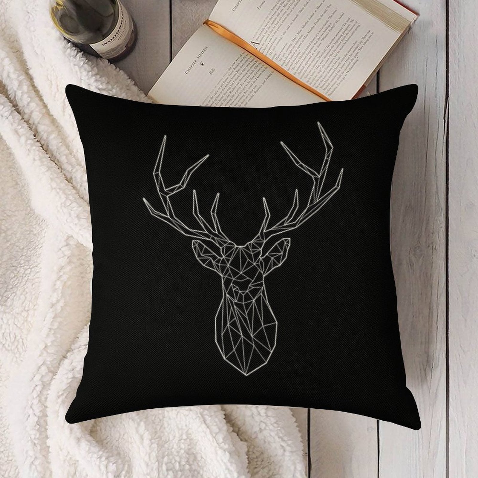 - Machine or hand washable (max 45°C). Avoid bleach and prolonged soaking to preserve the vibrant texture of your Geometric Stag - BLACK Luxury Pillow Cover.