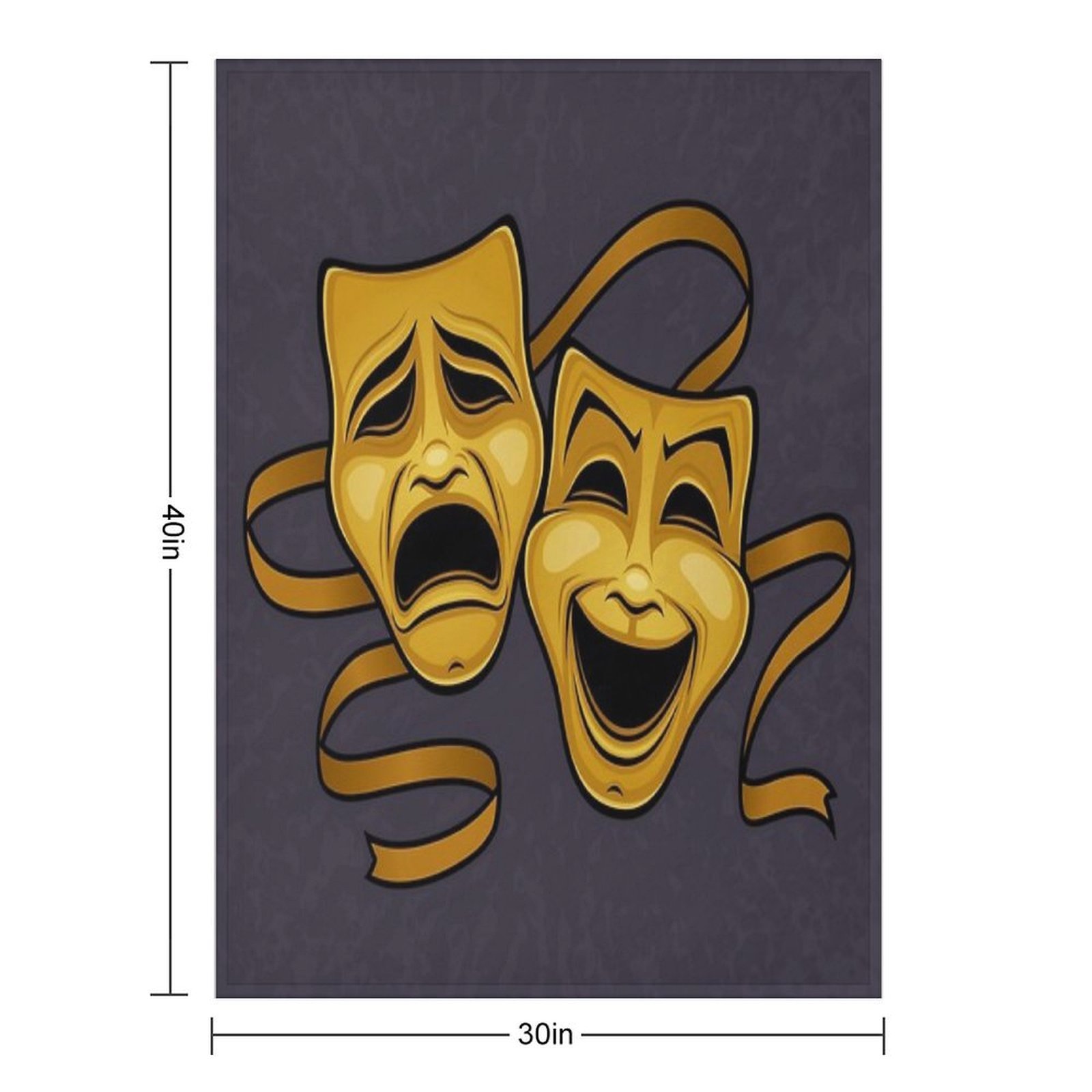 Gold Comedy And Tragedy Theater Masks Blanket Size Chart: