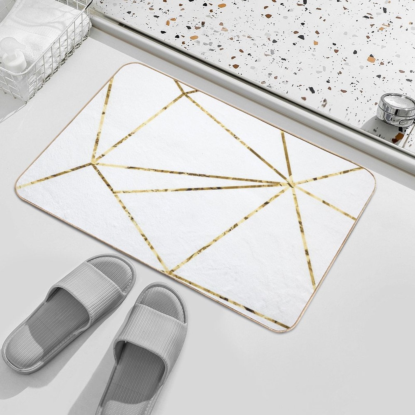 - Use as a vanity rug, guest suite accent, or mudroom defender – the Gold Lines Polygonal Minimalist White Mat adapts to any space.