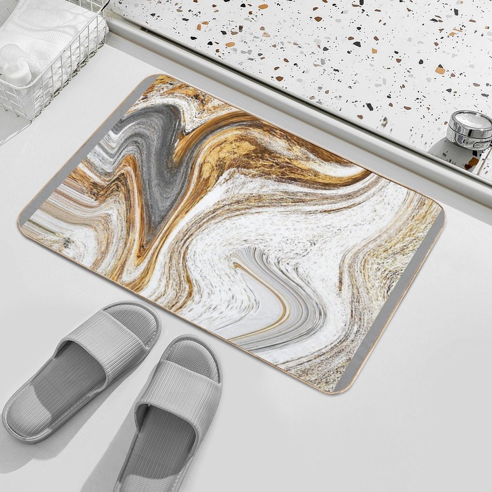 - Use as a vanity rug, guest suite accent, or mudroom defender – the Gold & Silver Marbling Mix Mat adapts to any space.