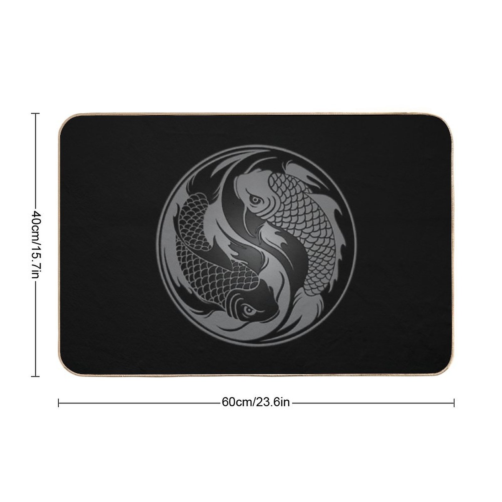 - Use as a vanity rug, guest suite accent, or mudroom defender – the Gray And Black Yin Yang Koi Fish Mat adapts to any space.
