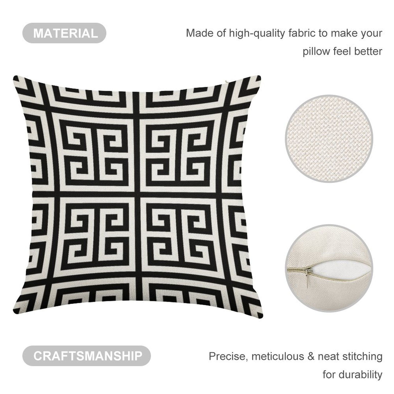 - Double-Stitched Edges: Precision stitching prevents fraying, stretching, and pilling, ensuring your Greek Key Black And White Pattern Linen Throw Pillow Cover stays pristine through countless uses.