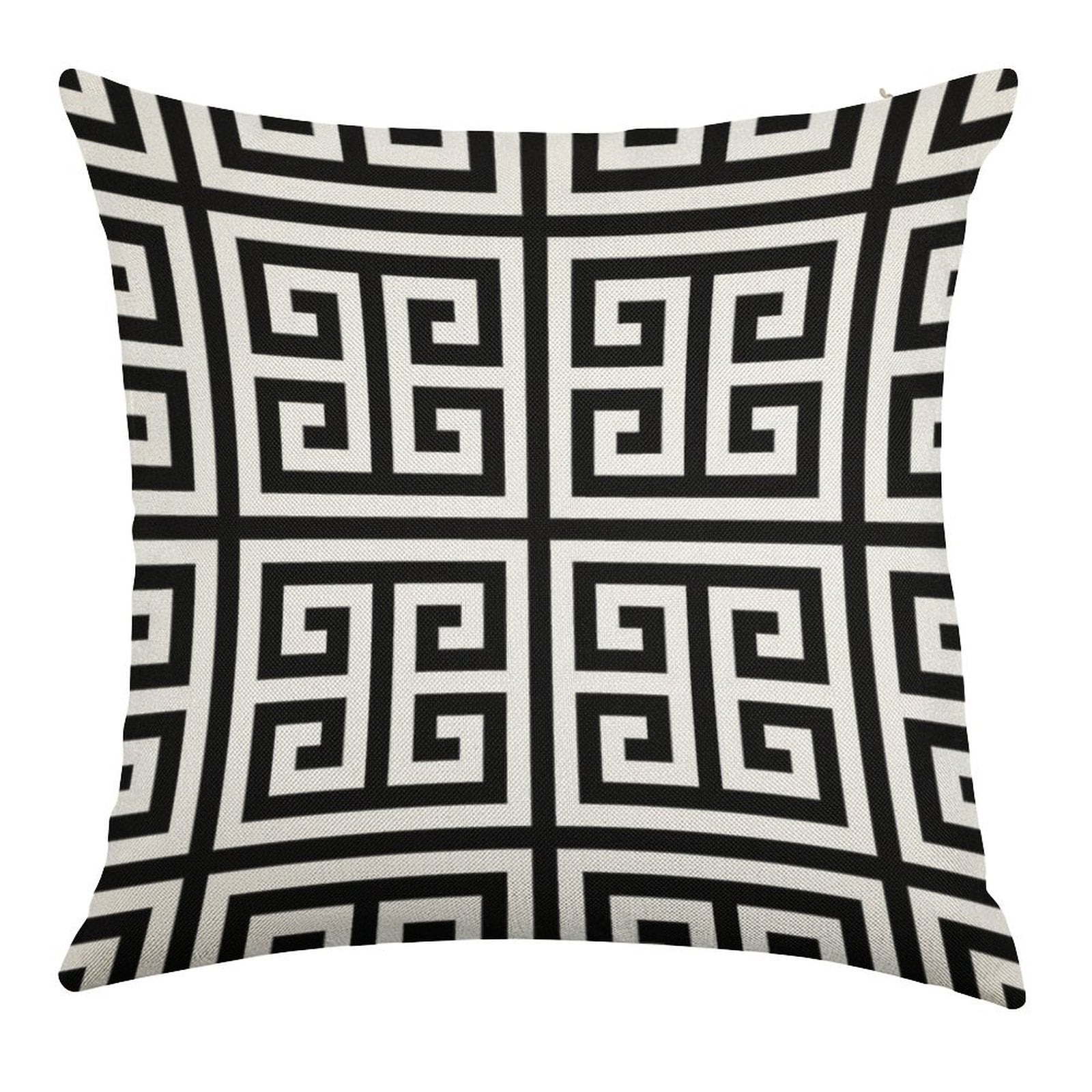 Greek Key Black And White Pattern Linen Throw Pillow Cover
