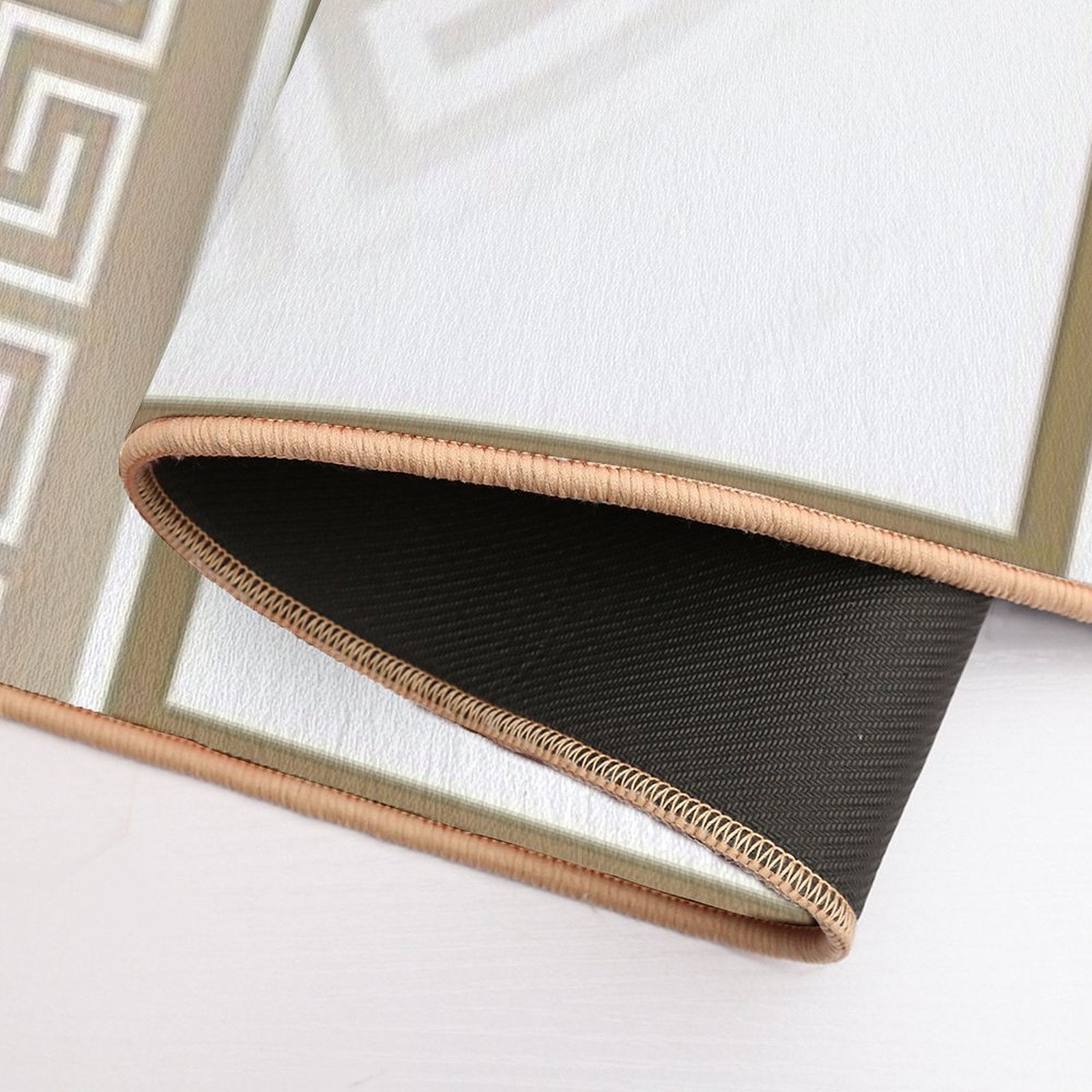 - Non-slip rubber backing grips floors securely, ideal for Greek Key Meander Bronze White Mat placements on tiles, wood, or marble.