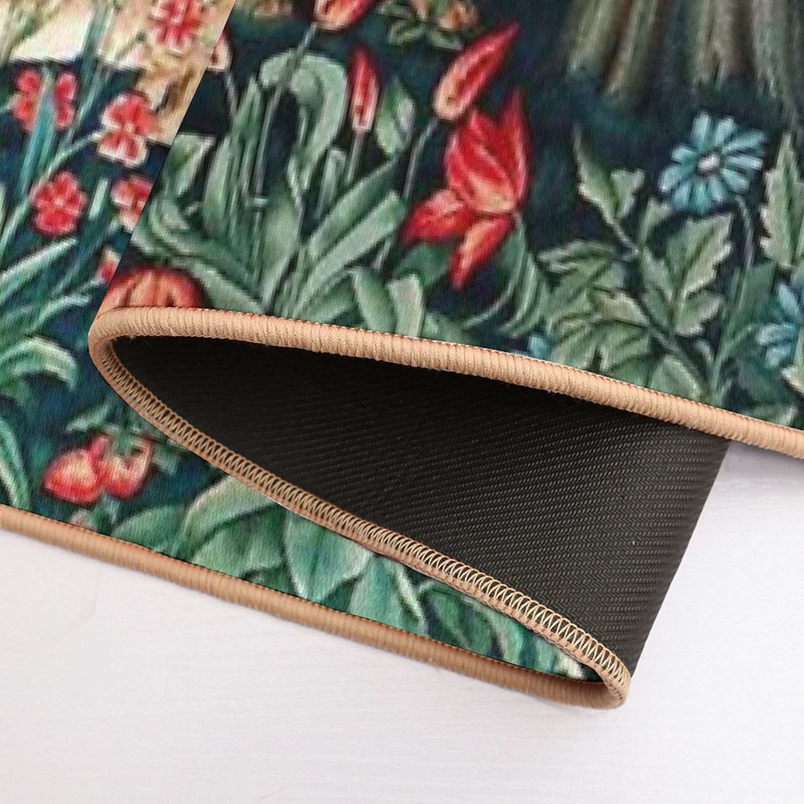 - Non-slip rubber backing grips floors securely, ideal for GREENERY, FOREST ANIMALS Fox And Hares Blue Green Floral Tapestry Mat placements on tiles, wood, or marble.