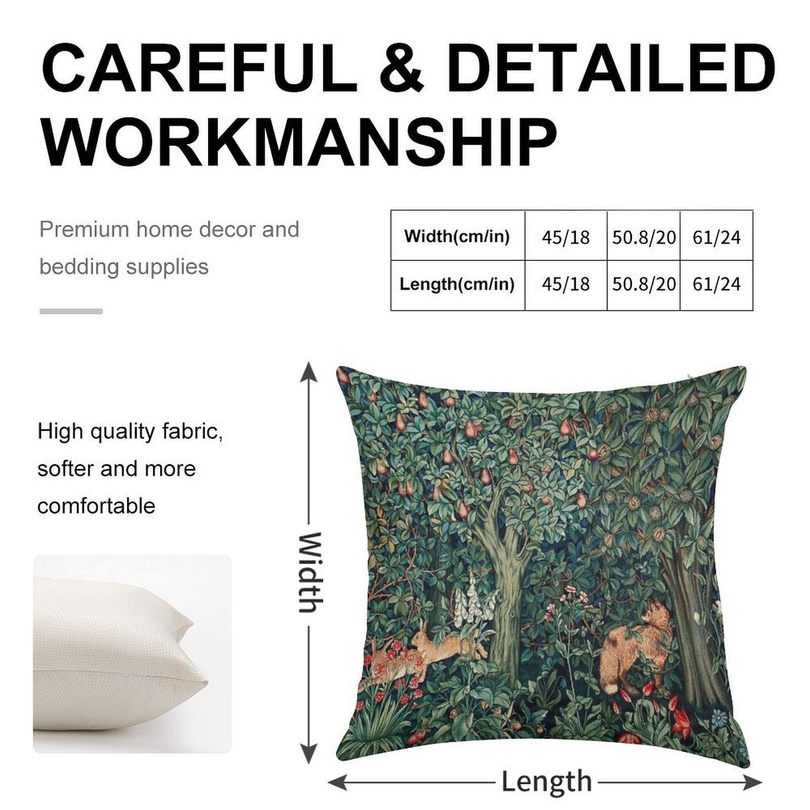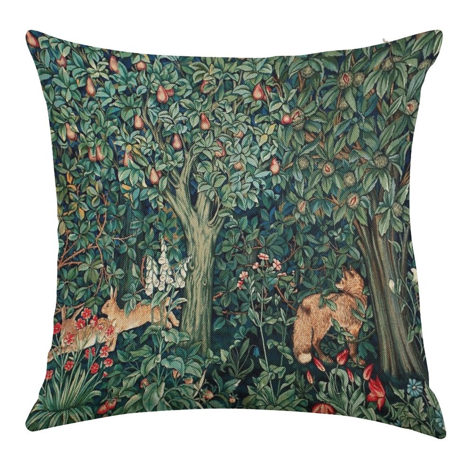 - Machine or hand washable (max 45°C). Avoid bleach and prolonged soaking to preserve the vibrant texture of your GREENERY, FOREST ANIMALS Fox And Hares Blue Green Floral Tapestry Luxury Pillow Cover.