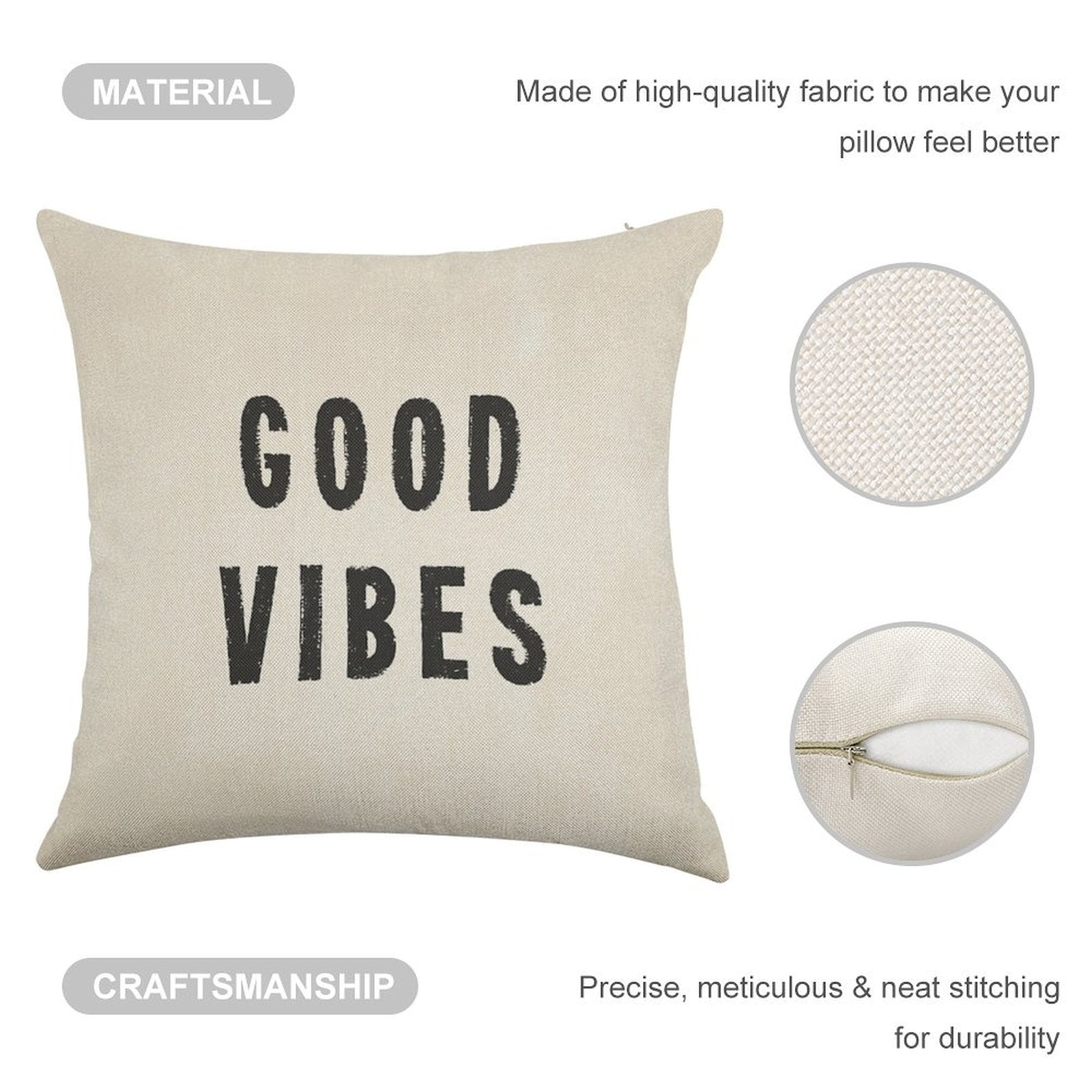 - Double-Stitched Edges: Precision stitching prevents fraying, stretching, and pilling, ensuring your Grungy Distressed Ink Good Vibes Black on Off-White Linen Throw Pillow Cover stays pristine through countless uses.