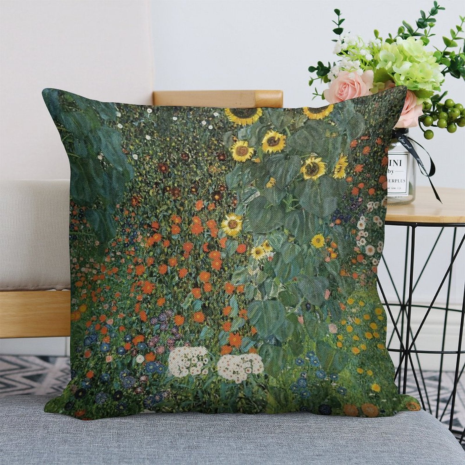 Gustav Klimt - The Sunflower Linen Throw Pillow Cover