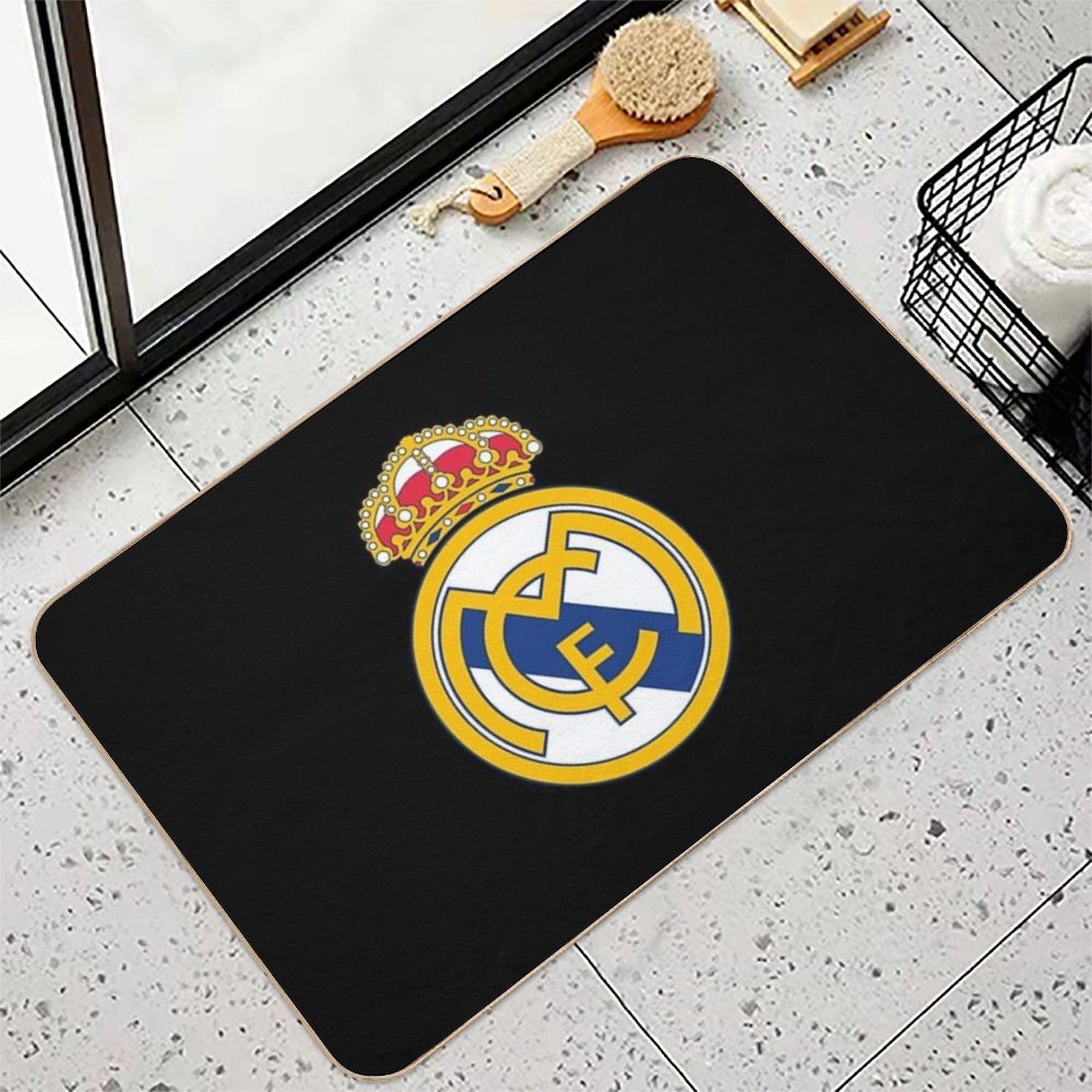 - Non-slip rubber backing grips floors securely, ideal for Hala Madrid Mat placements on tiles, wood, or marble.