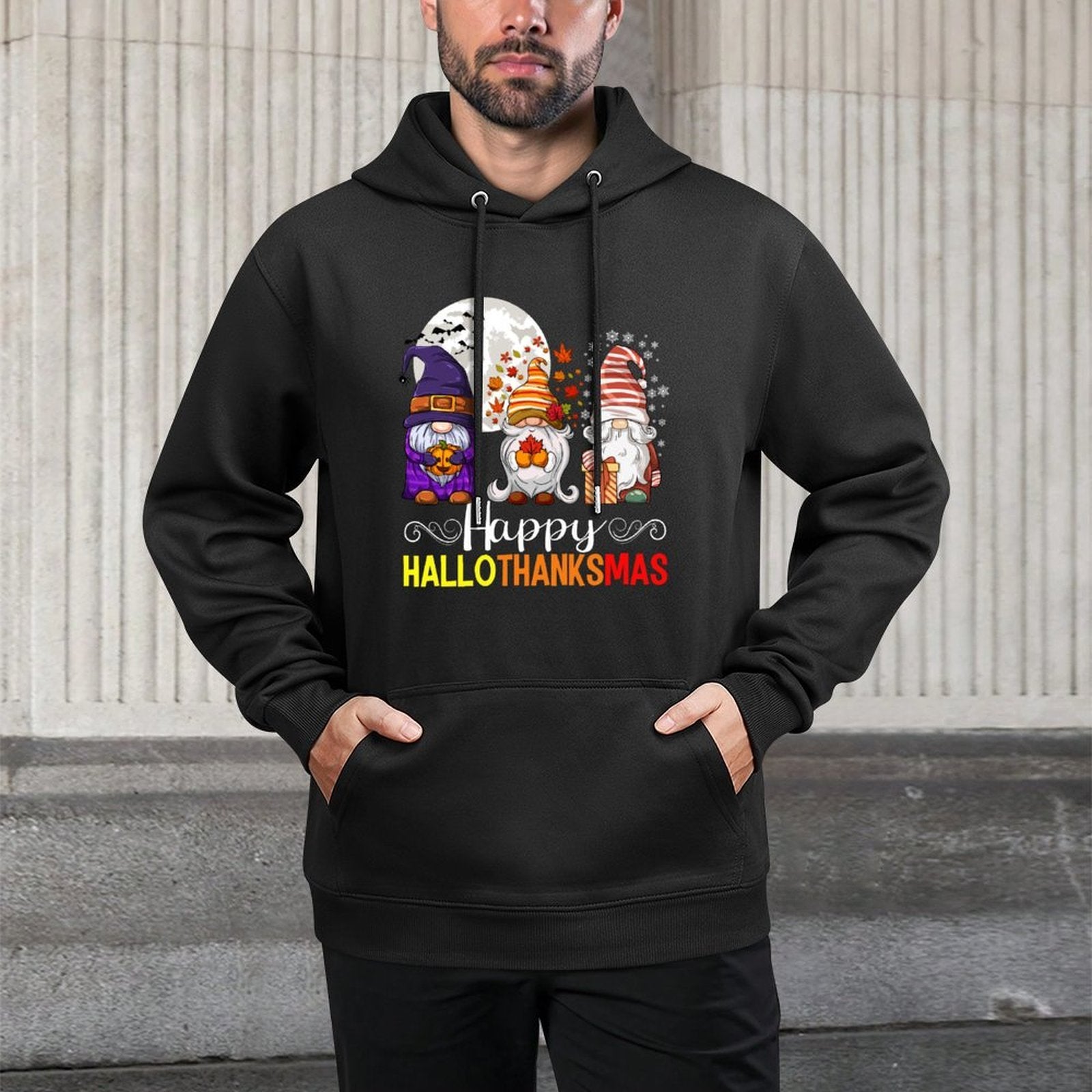 Elevate your casual wardrobe with the Halloween Thanksgiving Christmas Happy HalloThanksMas Gnomes Hoodie – crafted from premium 60% cotton and 40% polyester for everyday comfort and durability. Designed for Halloween Thanksgiving Christmas Happy HalloThanksMas Gnomes style enthusiasts who value both fit and function, this unisex sweatshirt features a relaxed silhouette, breathable fabric, and versatile streetwear appeal. Whether you're exploring the city, relaxing at home, or meeting friends for a Halloween Thanksgiving Christmas Happy HalloThanksMas Gnomes weekend outing, this hoodie delivers softness, style, and easy care in one timeless piece.