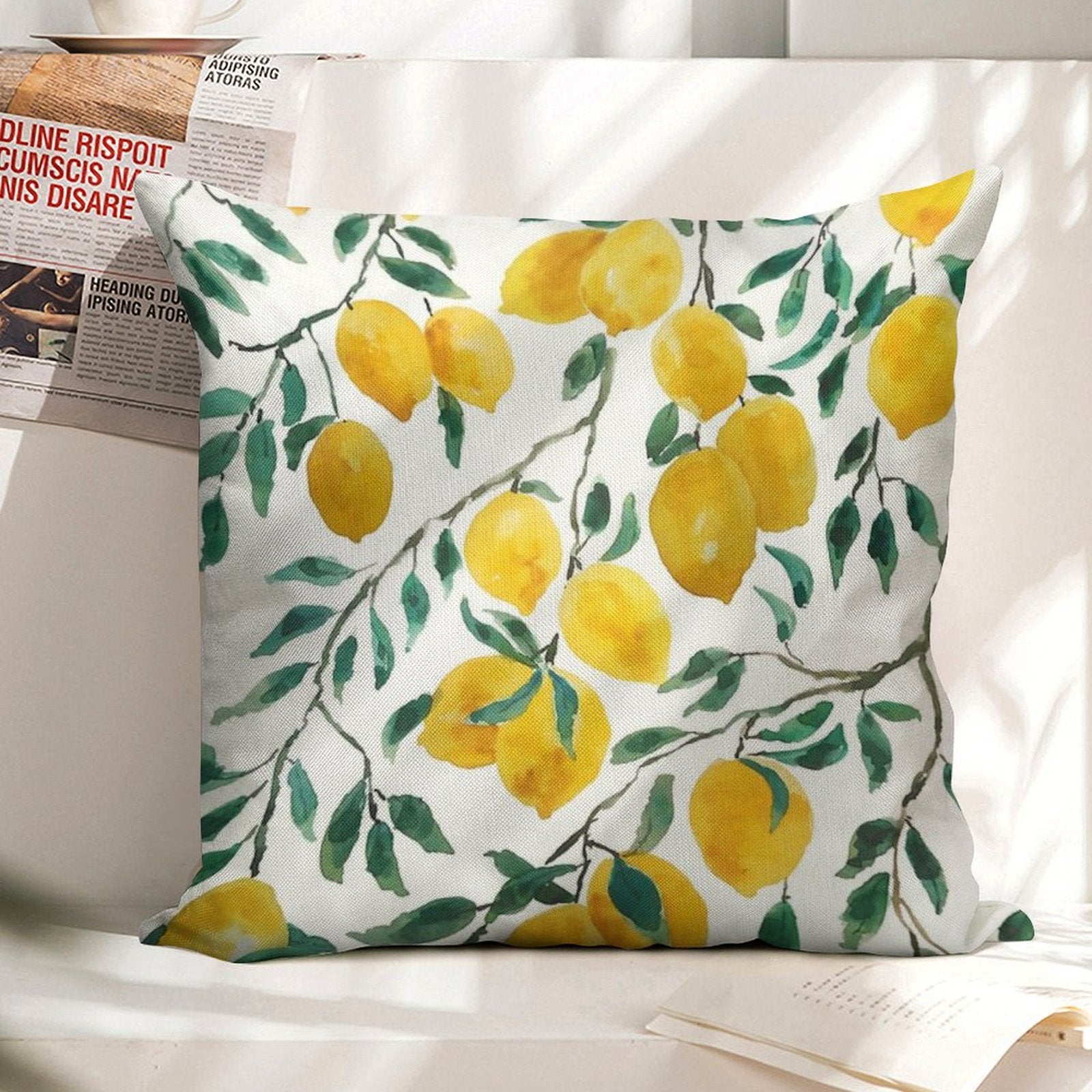 Hand Painted Watercolor Yellow Lemon Pattern Linen Throw Pillow Cover
