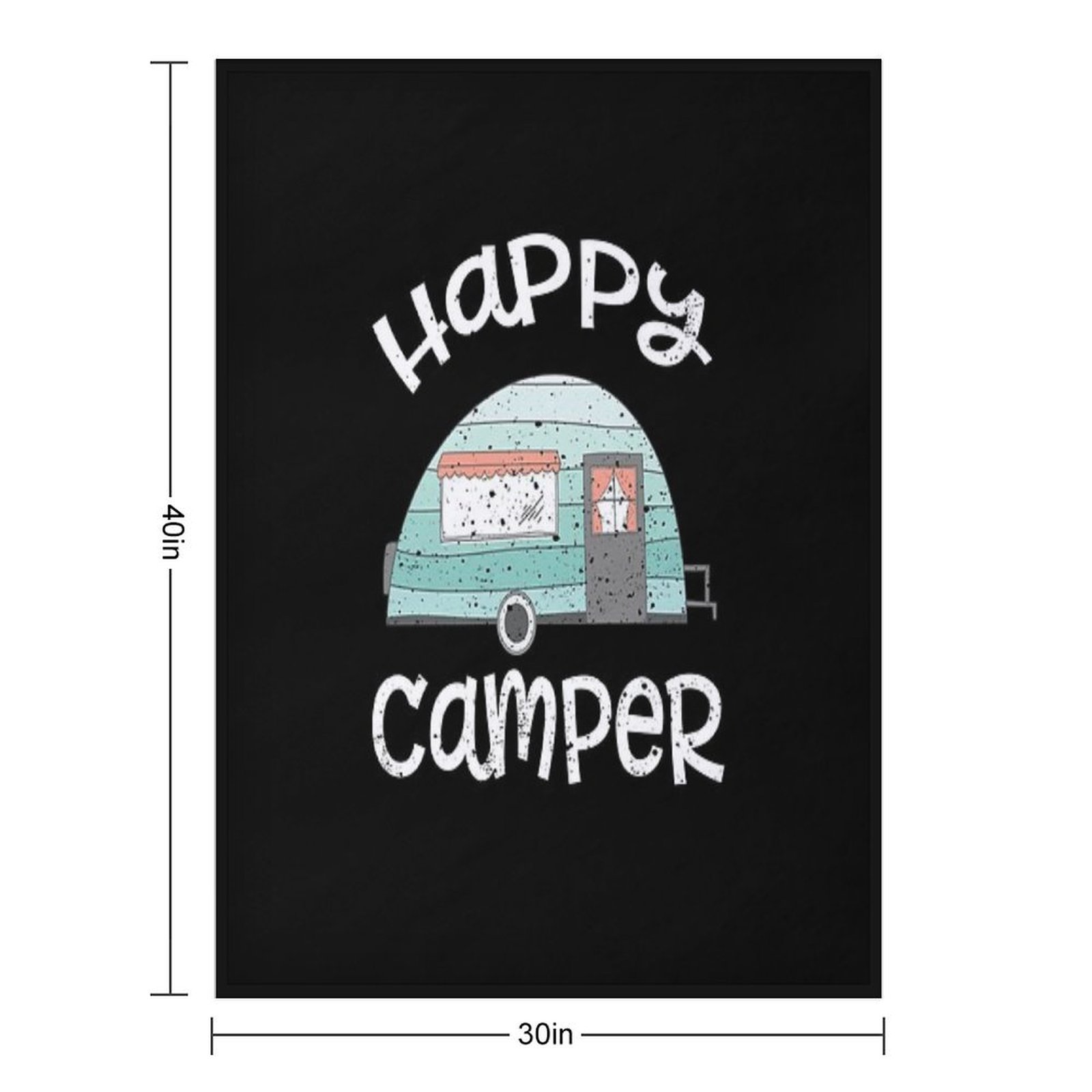 Happy Camper Retro Trailer RV Caravan Camping Blanket Size Chart: