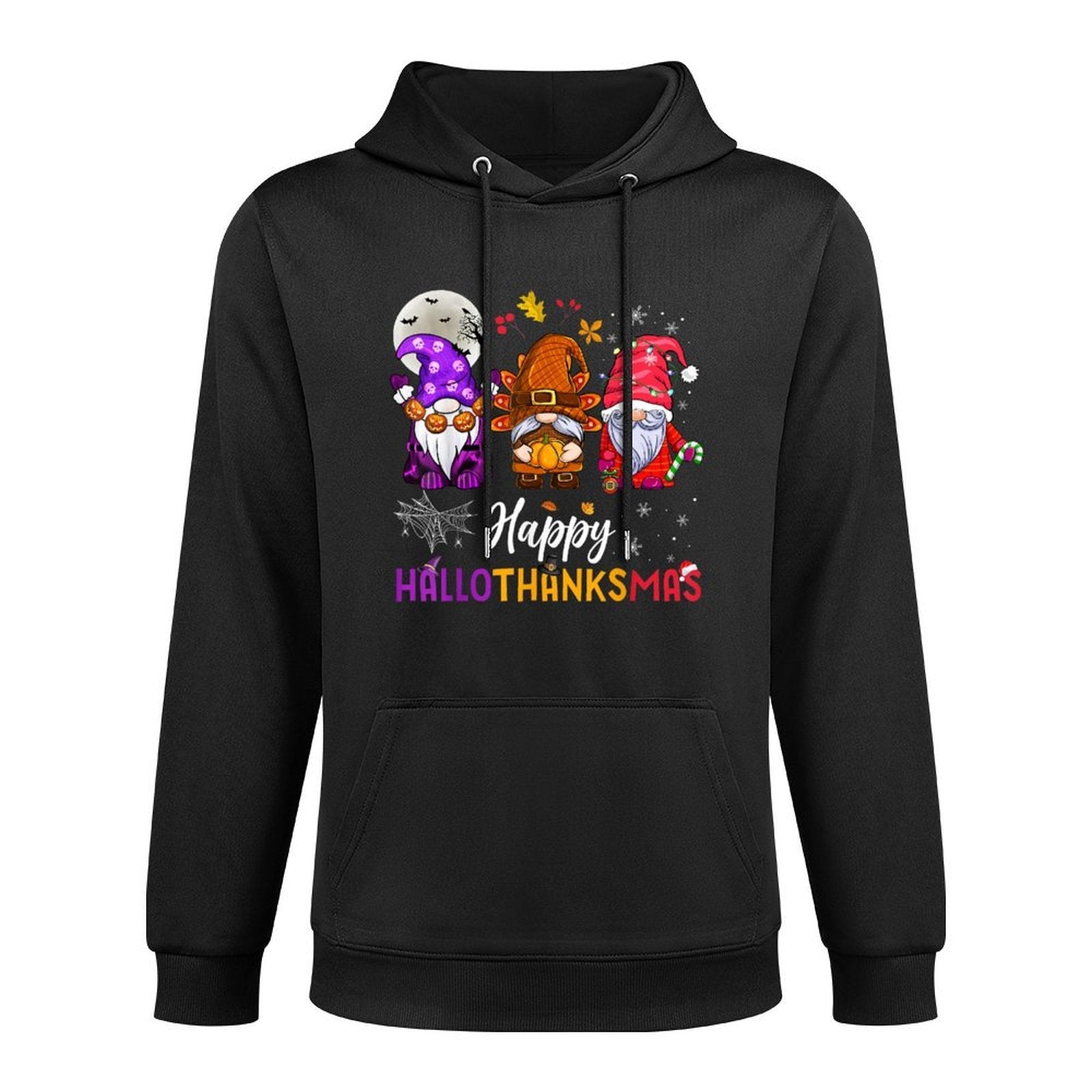 Happy Hallothanksmas Gnomes Lover Halloween Merry Christmas Shrink-Resistant Hoodie
